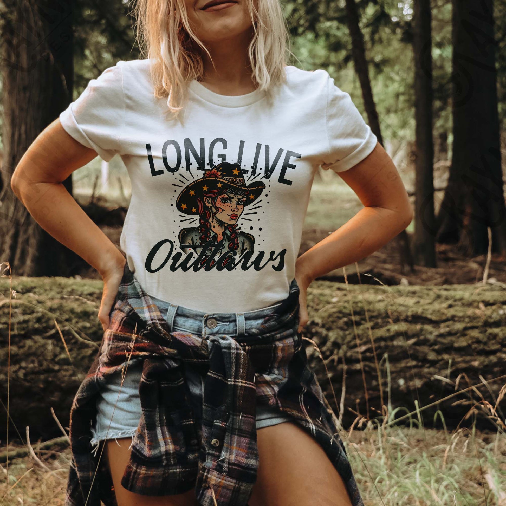 Long Live Outlaws Sublimation Design PNG Digital Download Western Cowgirl Black