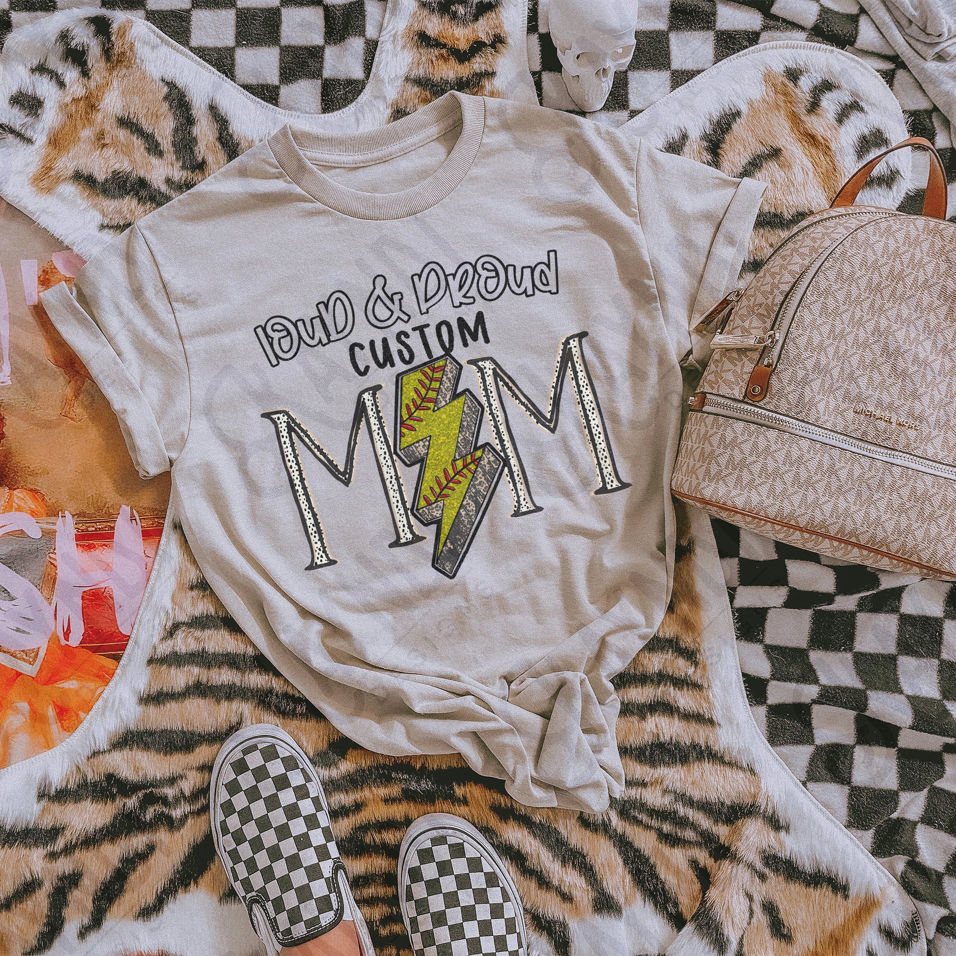 Loud & Proud Softball Mom Sublimation Design PNG Digital Download Printable Mom Sparkle Lightning