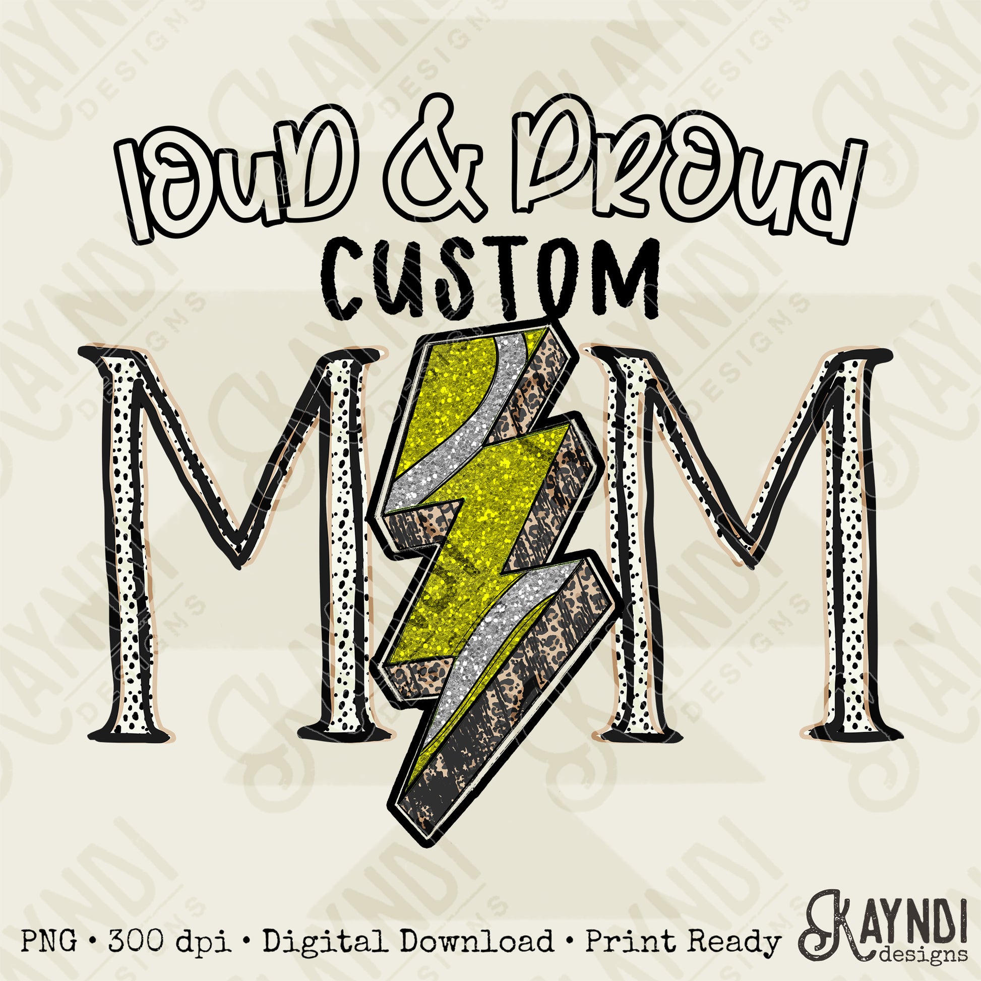 Loud & Proud Tennis Mom Sublimation Design PNG Digital Download Printable Mom Sparkle Lightning