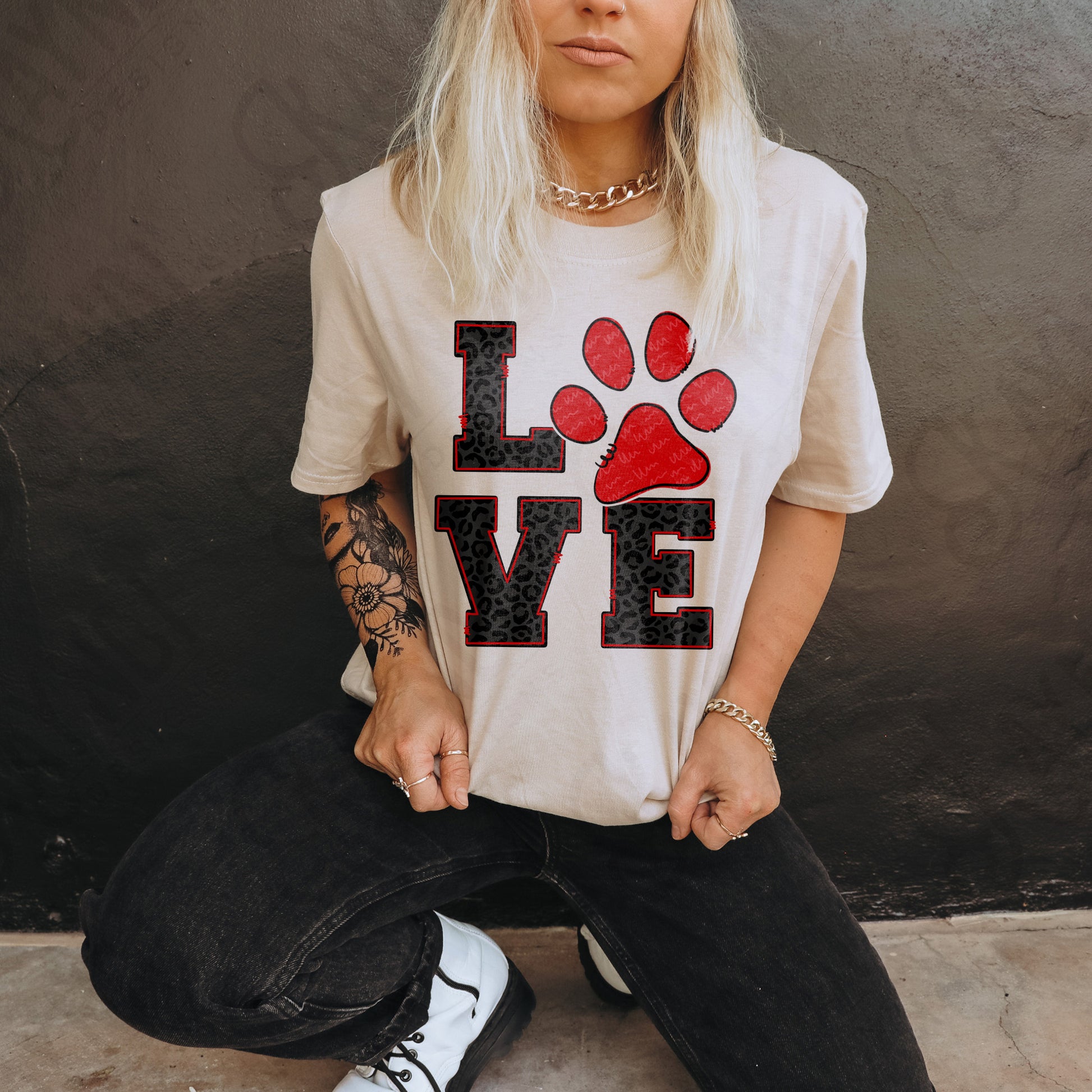 LOVE Red Paw Print Sublimation Design PNG Digital Download Printable