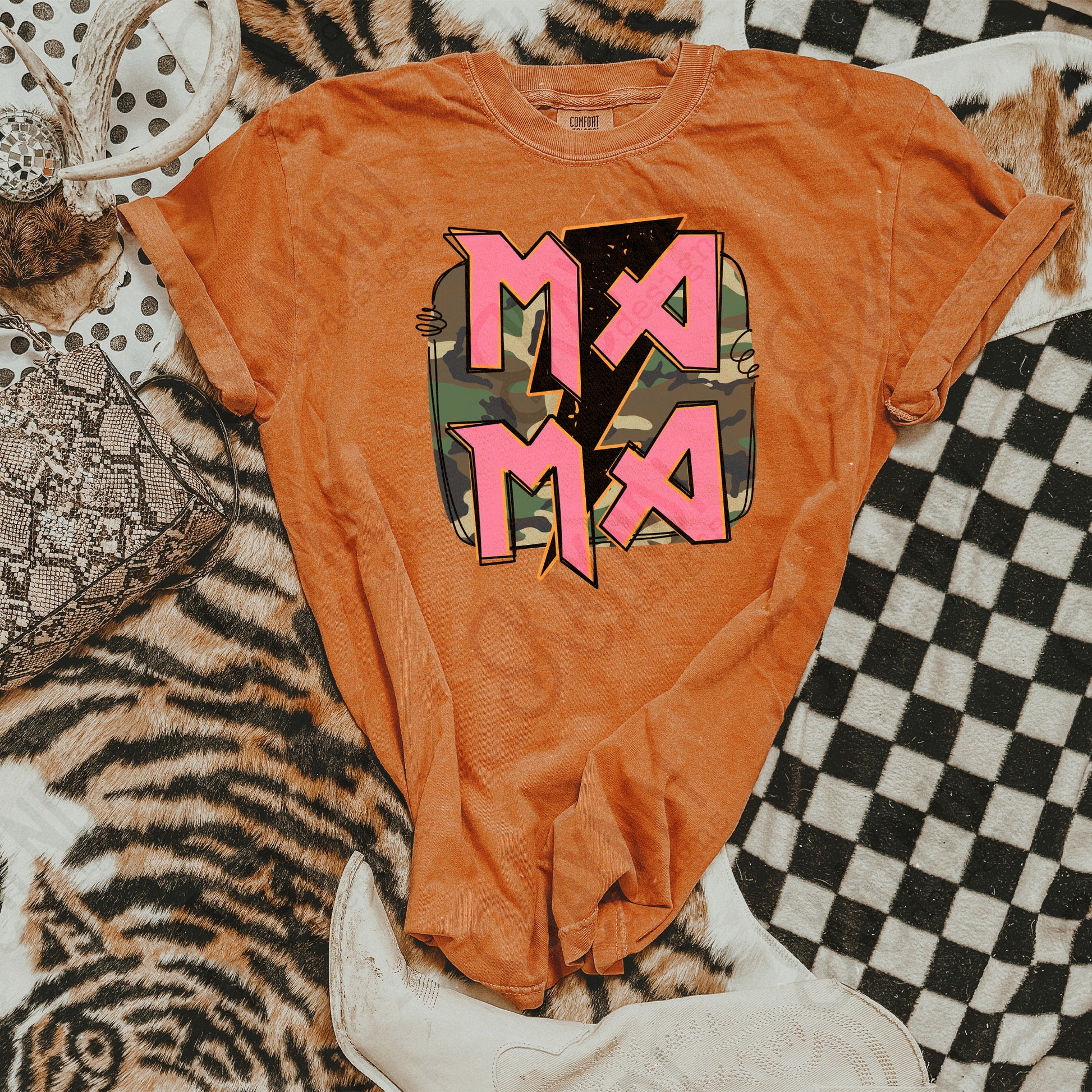 Mama Camo Sublimation Design PNG Digital Download Printable Southern Lightning Pink Retro