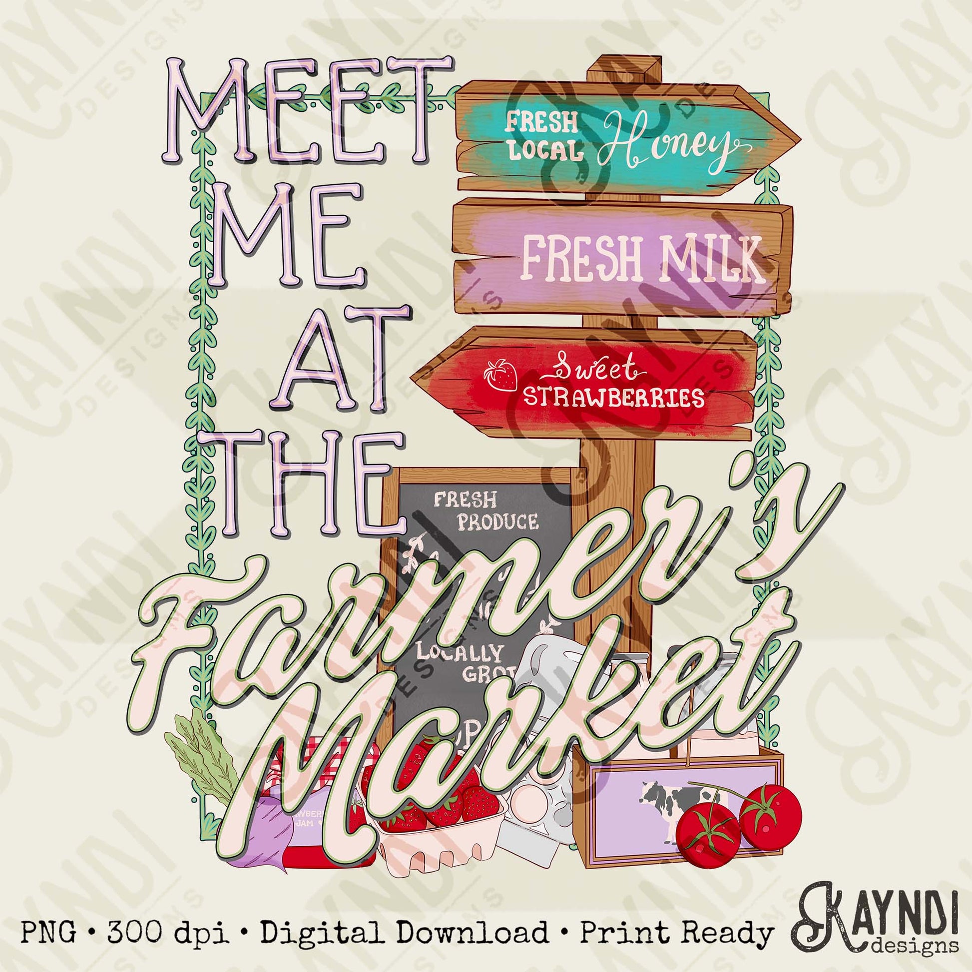 Meet Me at the Farmers Market Sublimation Design PNG Digital Download Country Vintage Strawberries