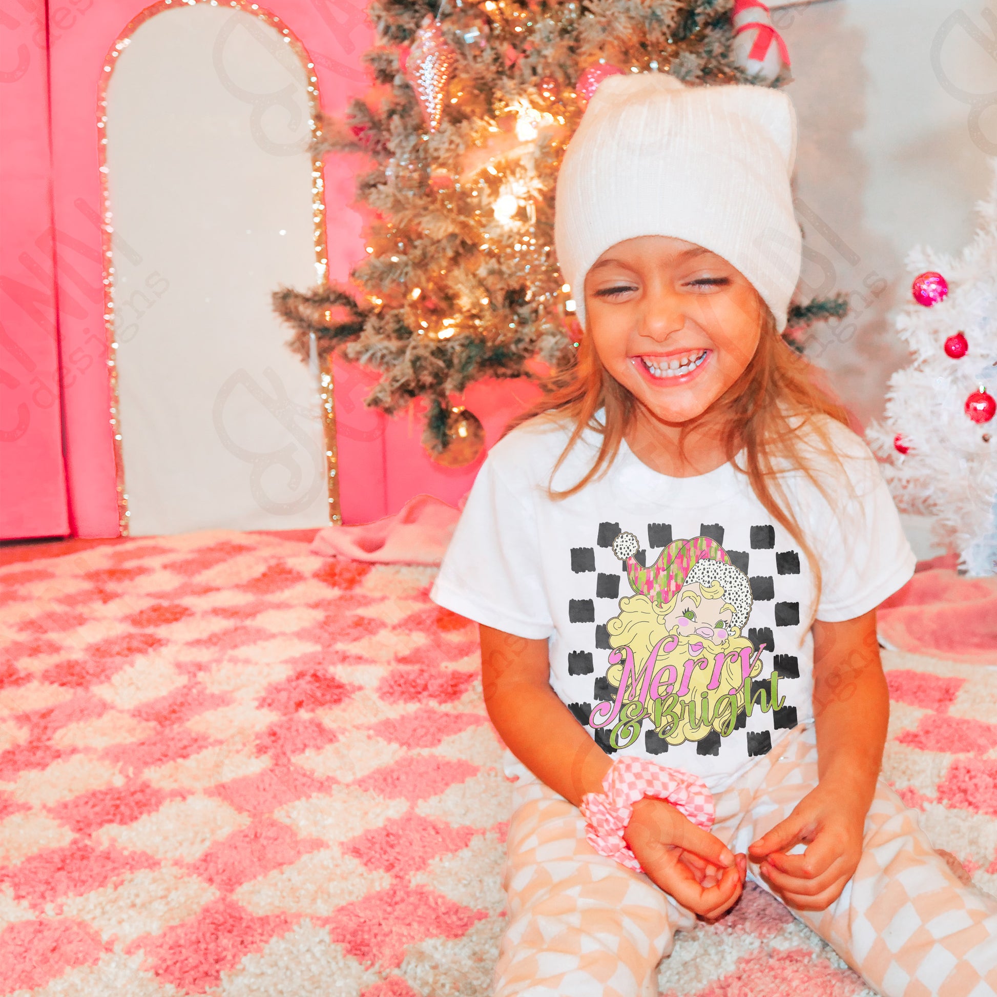 Merry & Bright Sublimation Design PNG Digital Download Printable Retro Christmas Checkered Colorful