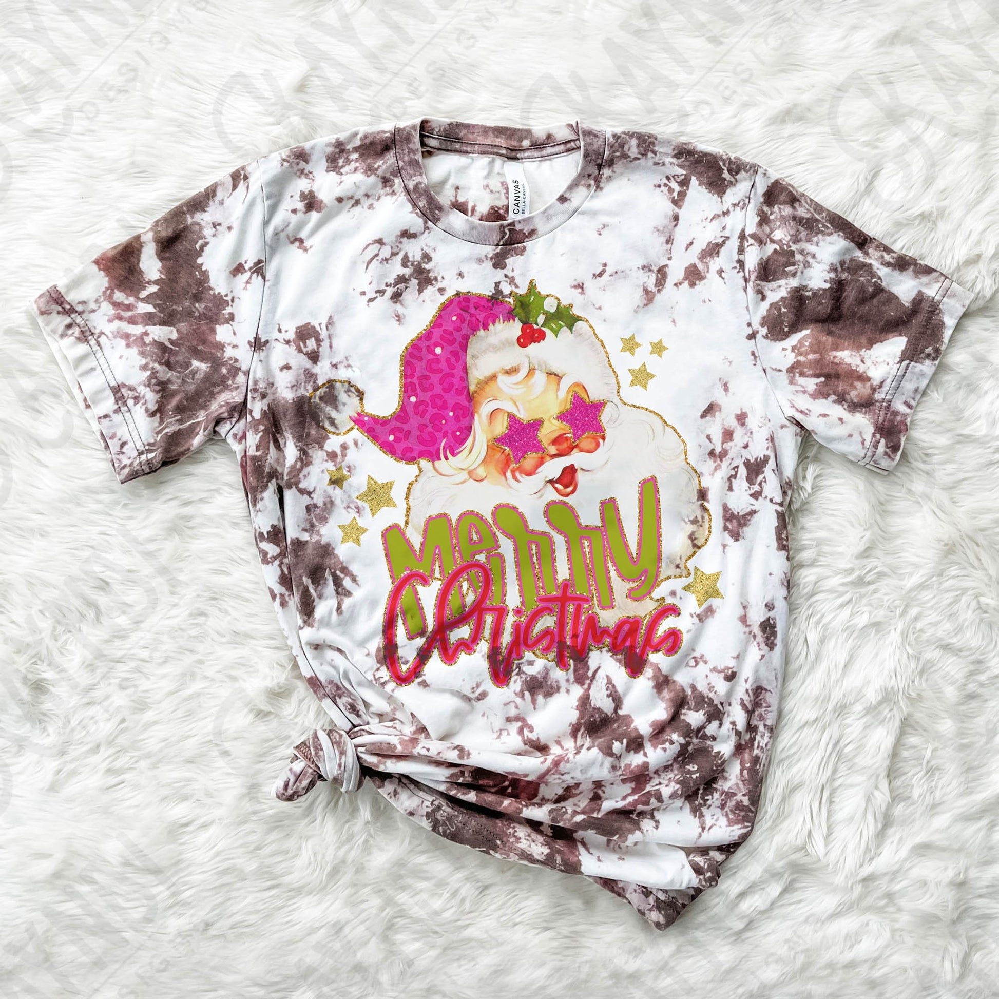Merry Christmas Preppy Santa Sublimation Design PNG Digital Download Printable Pink Hat Leopard Cheetah Vintage Glitter Star Eyes