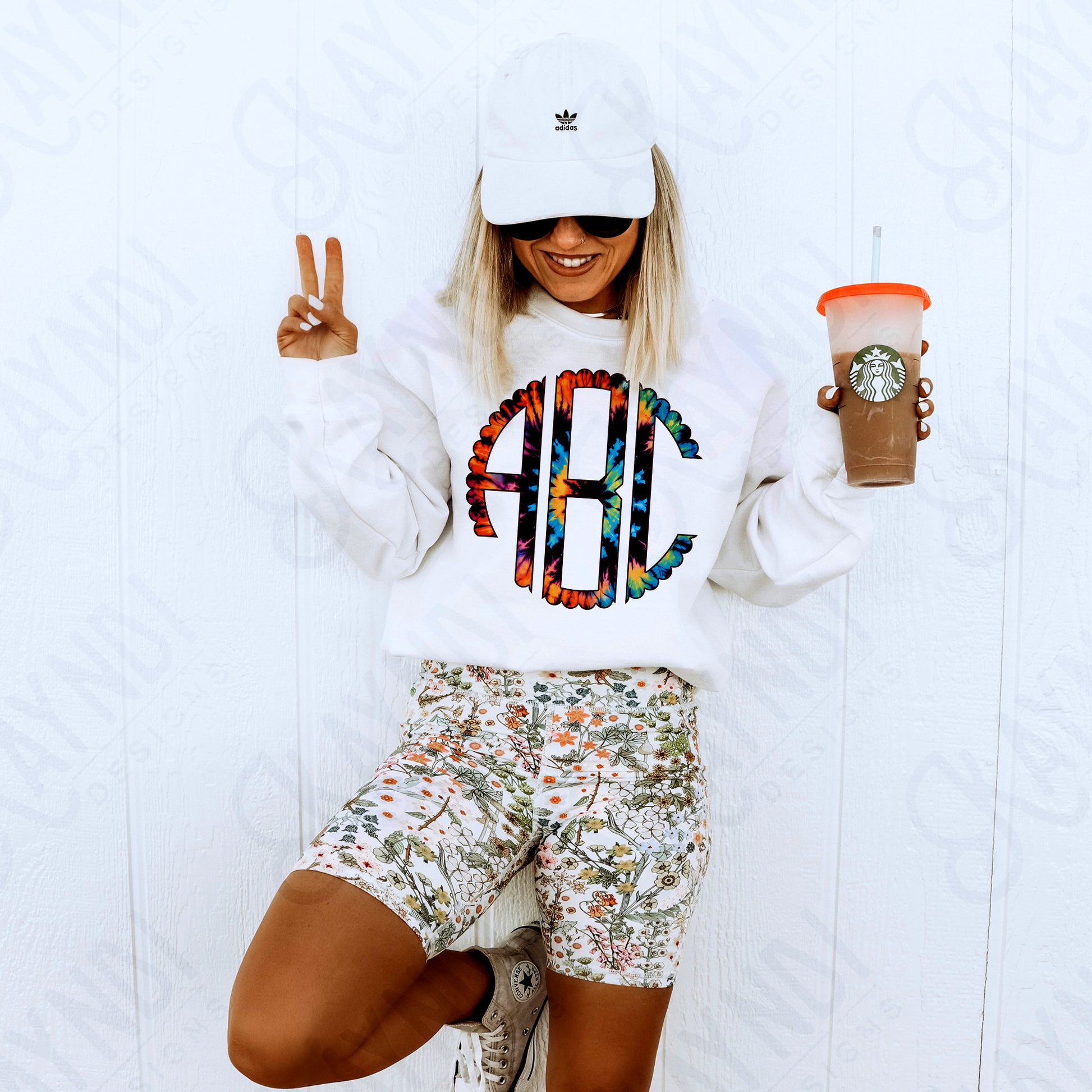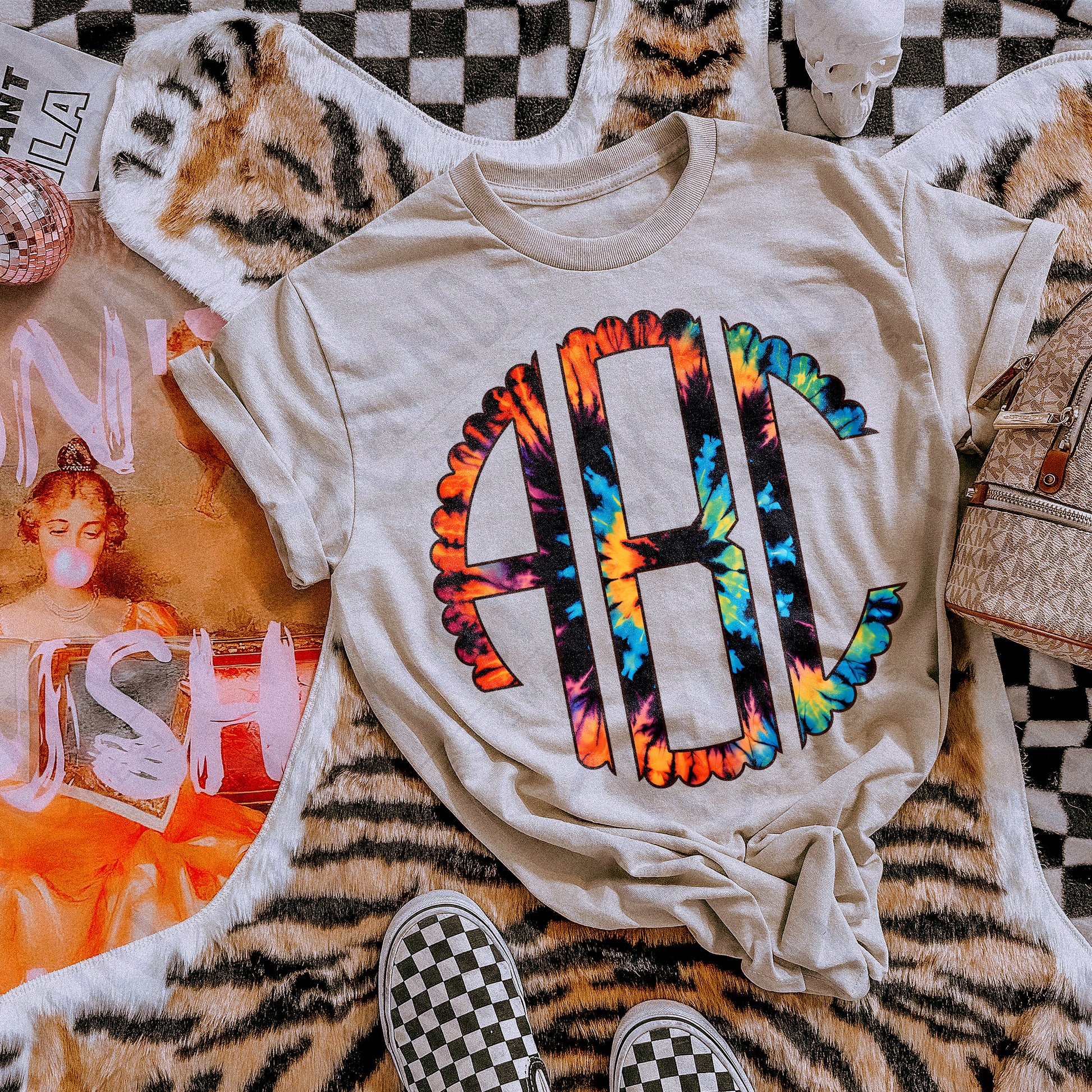 Midnight Blaze Tie-Dye Scalloped Monogram Set Sublimation Design PNG Digital Download Printable