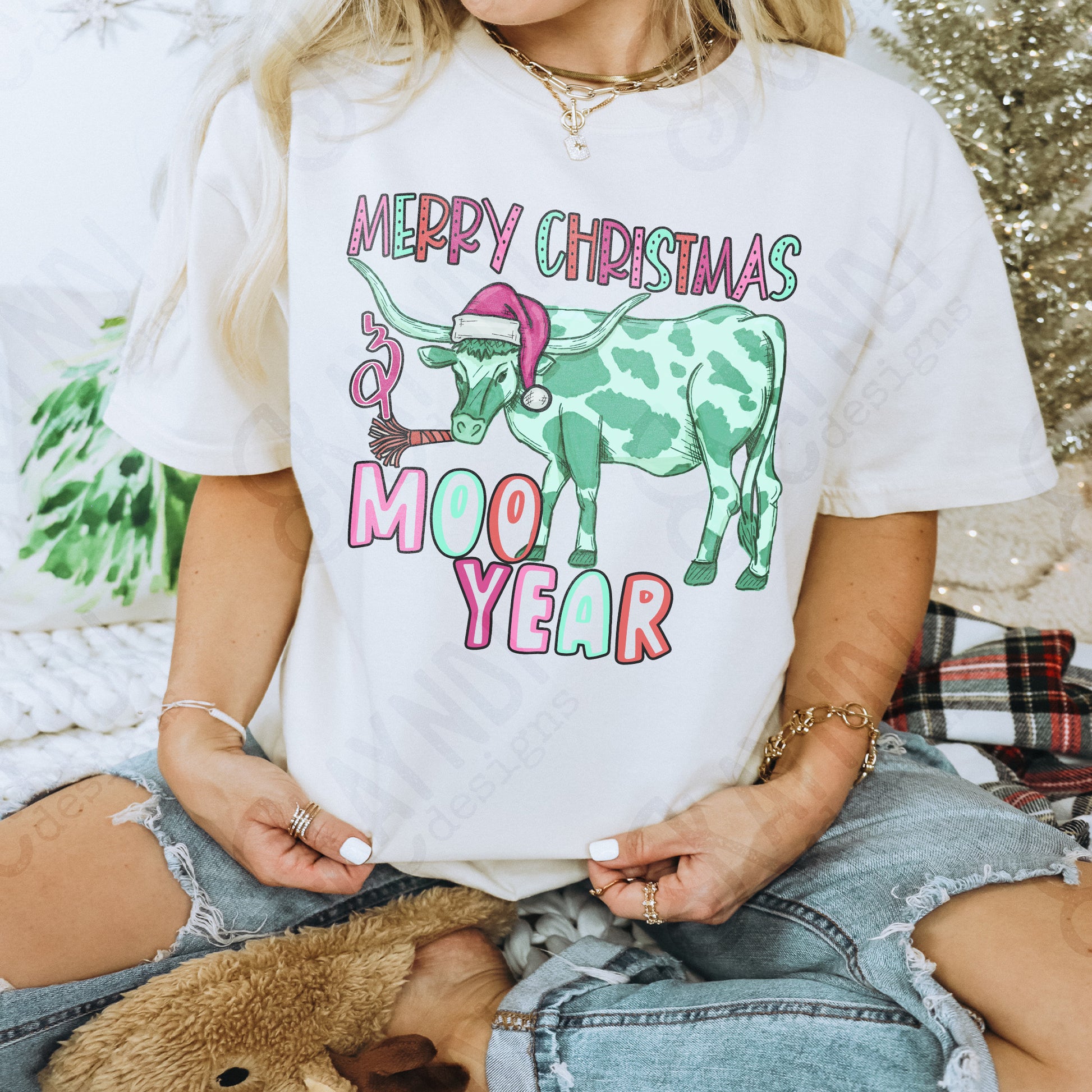 Moo Year Teal Sublimation Design PNG Digital Download Printable Christmas Western Fun New Years