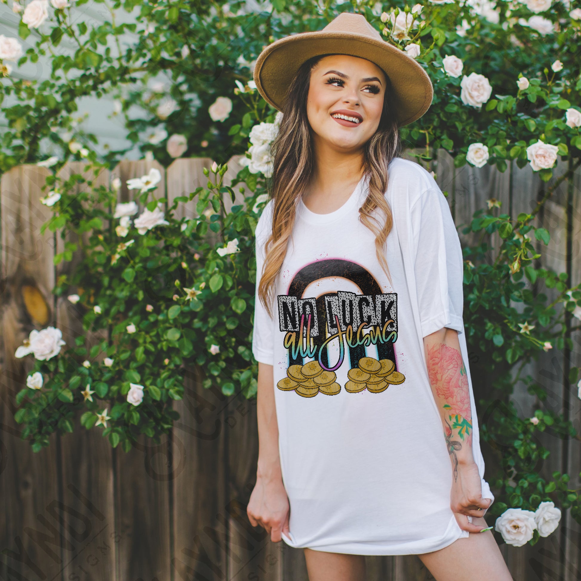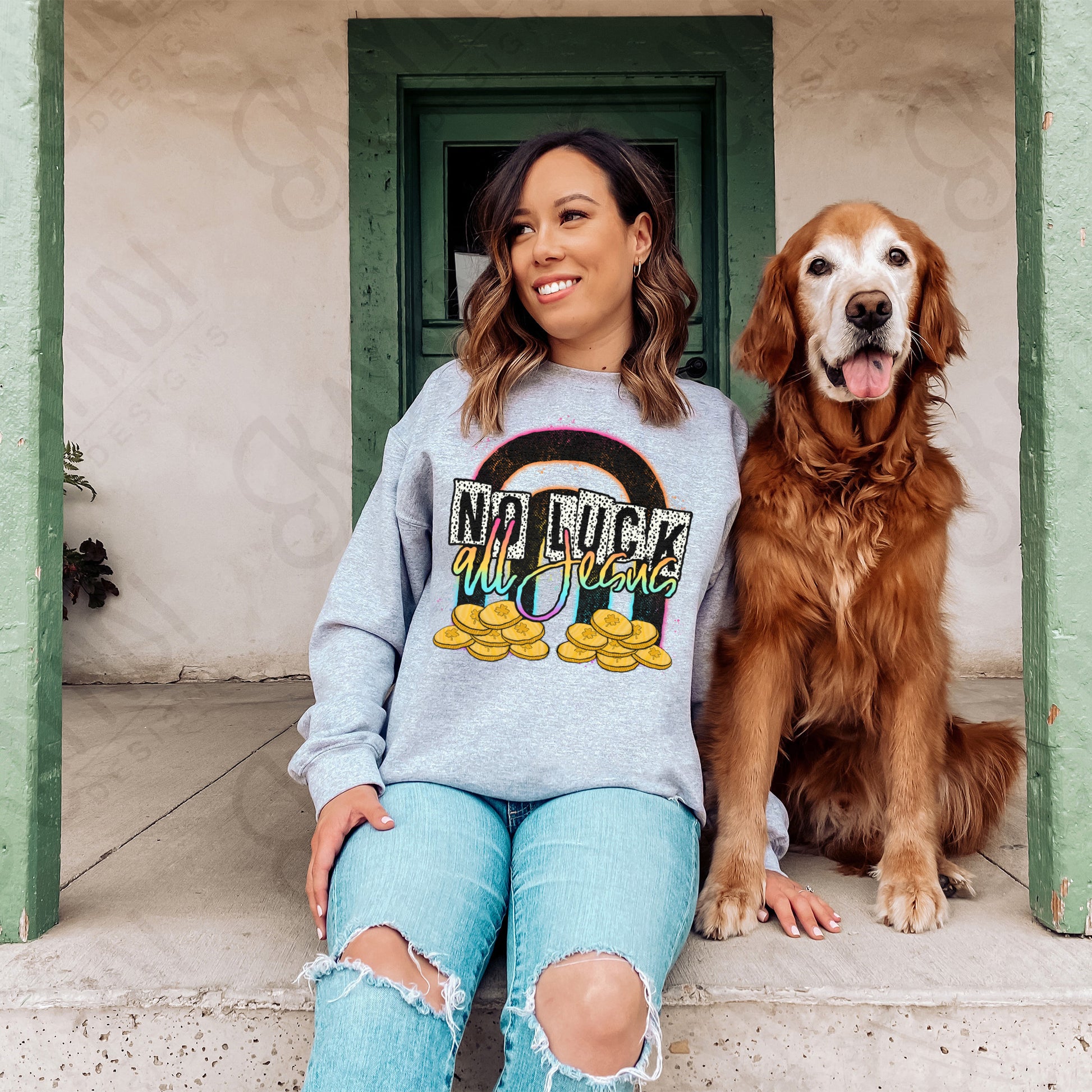 No Luck All Jesus Sublimation Design PNG Digital Download Printable Rainbow Gold Faith