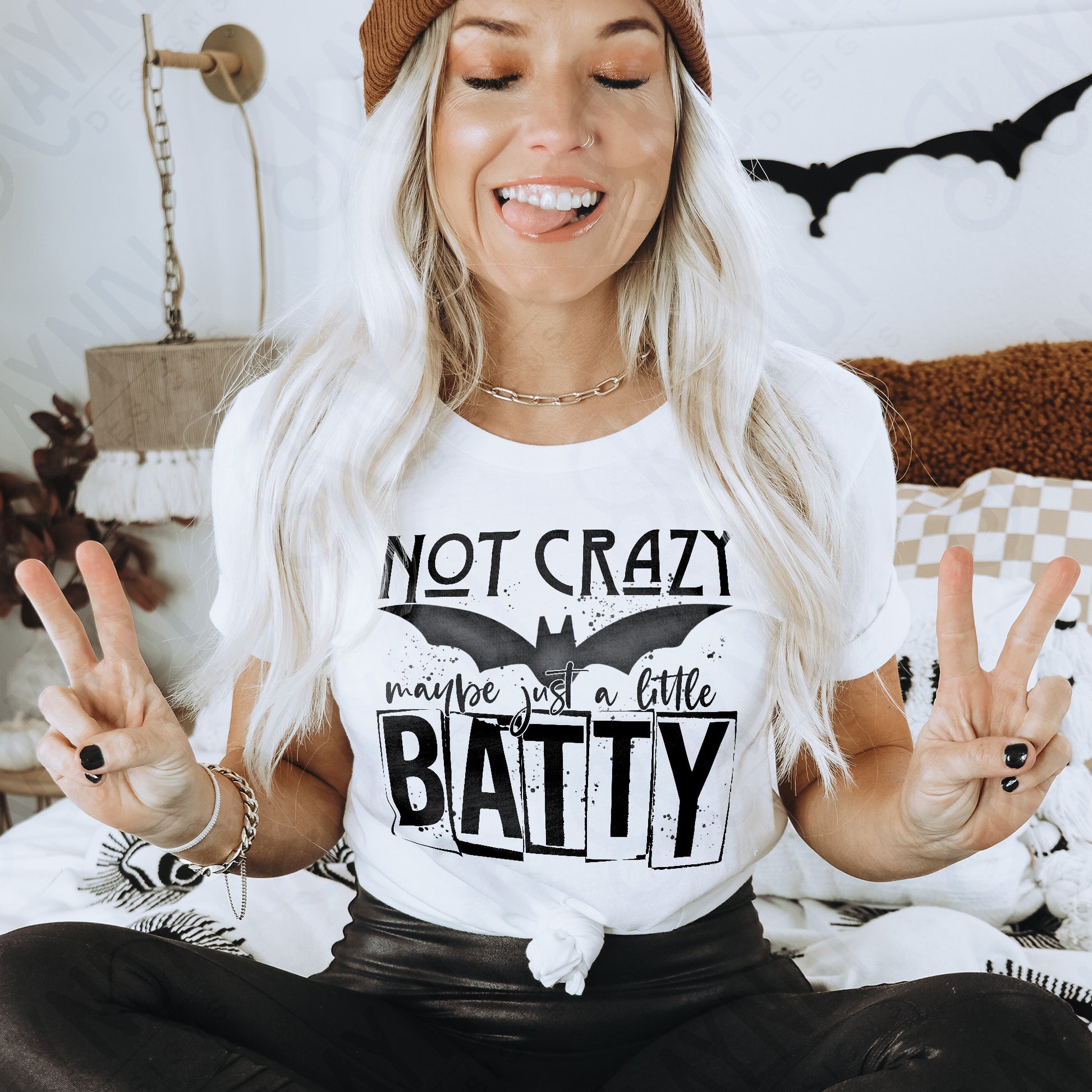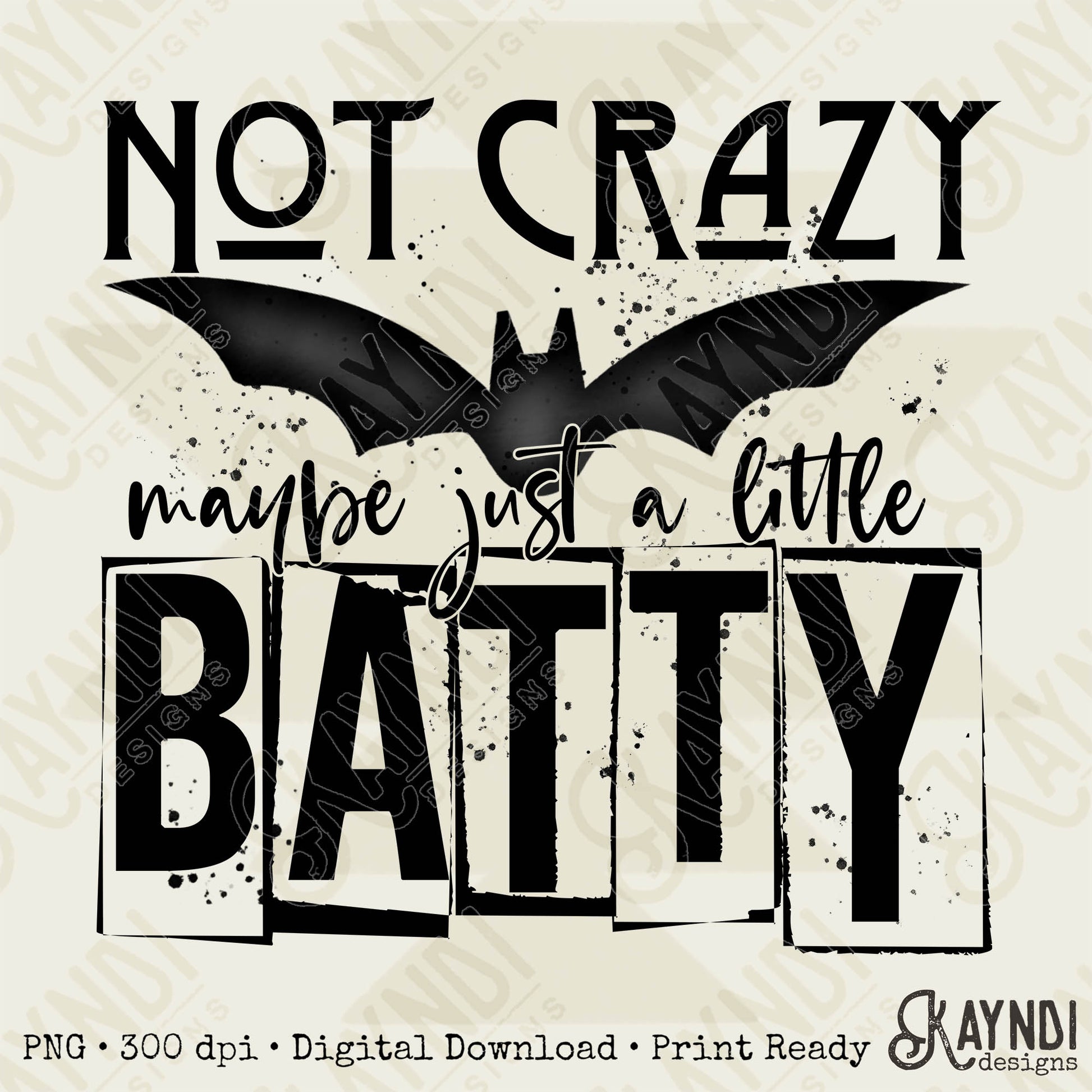 Not Crazy Maybe Just a Little Batty Sublimation Design PNG Digital Download Printable Halloween Bat Snarky Funny Humor Quote Saying