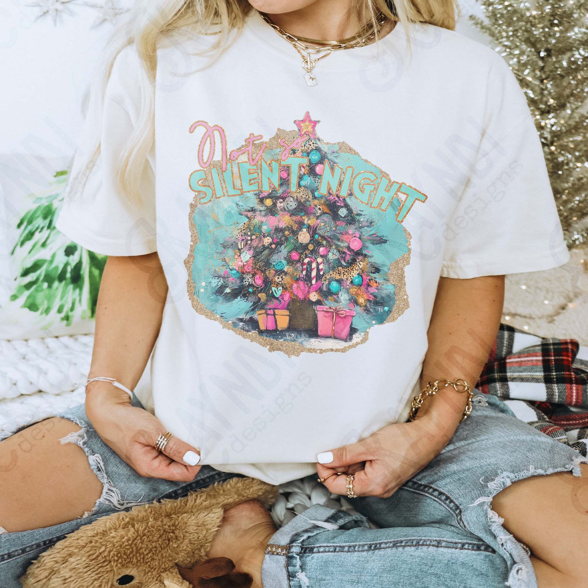 Not So Silent Night Sublimation Design PNG Digital Download Christmas Tree Presents