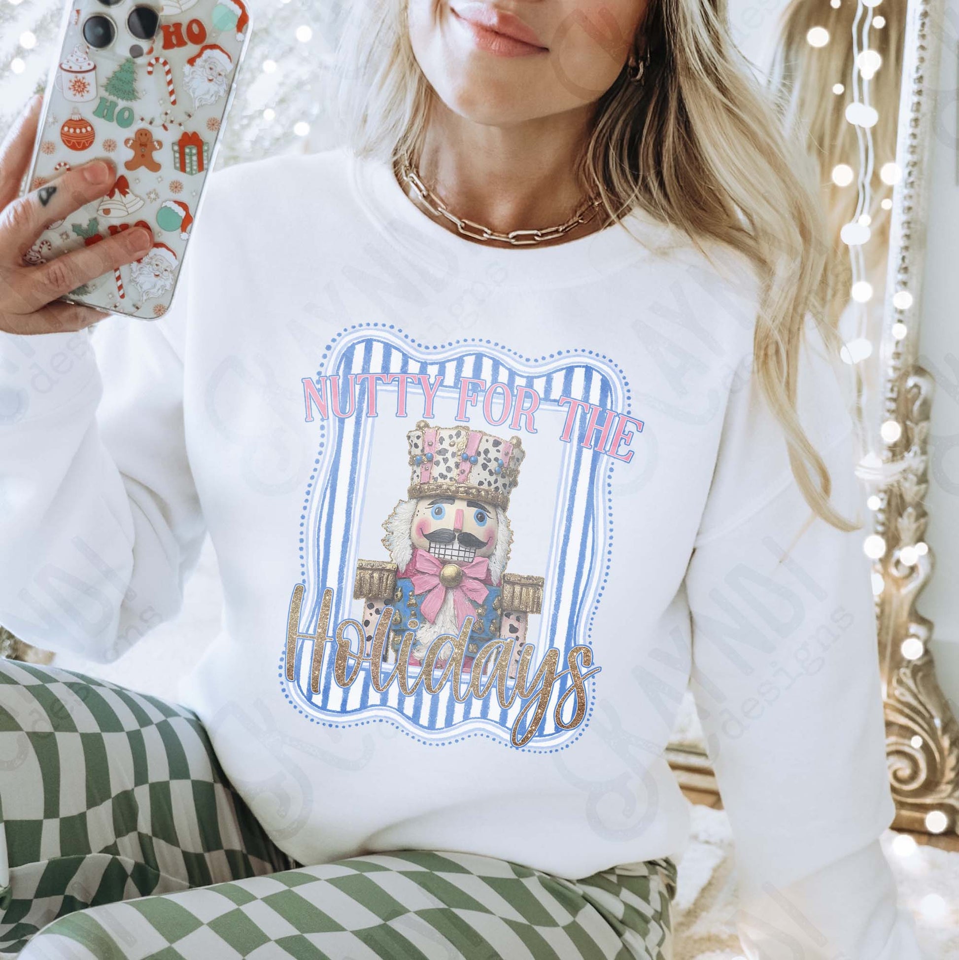 Nutty for the Holidays Sublimation Design PNG Digital Download Cheetah Nutcraker Pink Blue