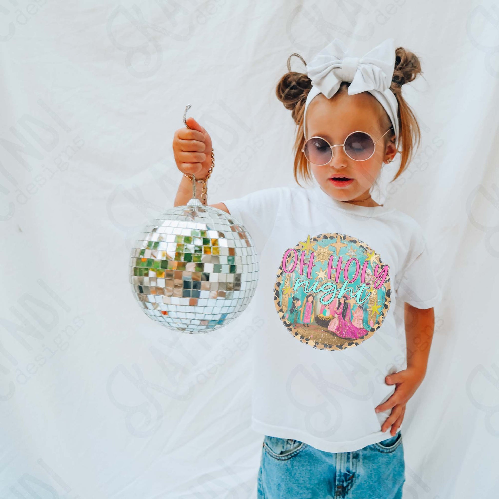 Oh Holy Night Sublimation Design PNG Digital Download Nativity Faith Jesus Pink