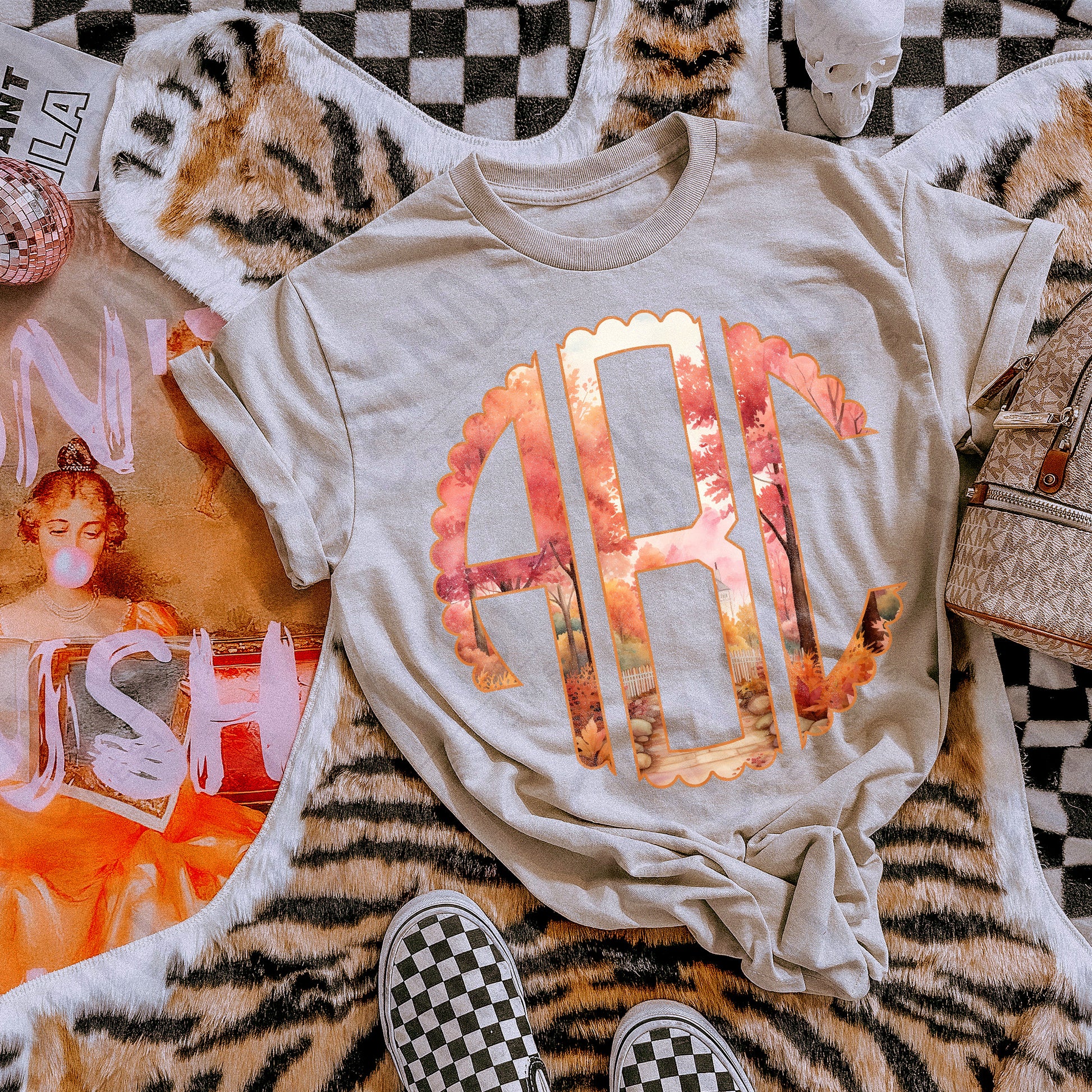 Pink Maple Scalloped Monogram Set Sublimation Design PNG Digital Download Printable