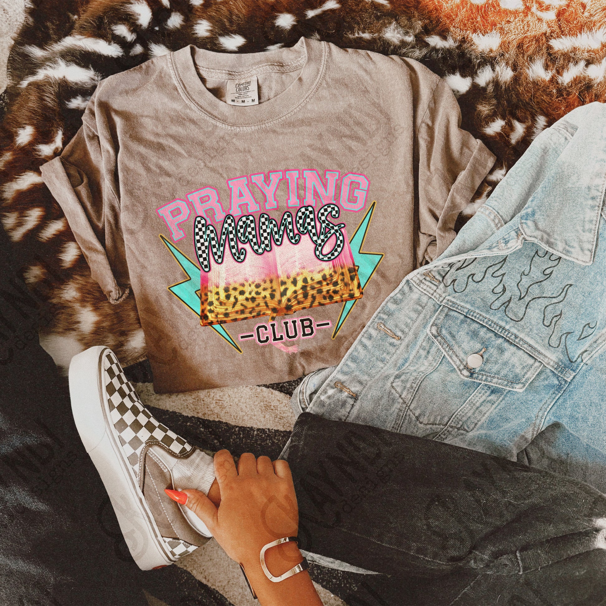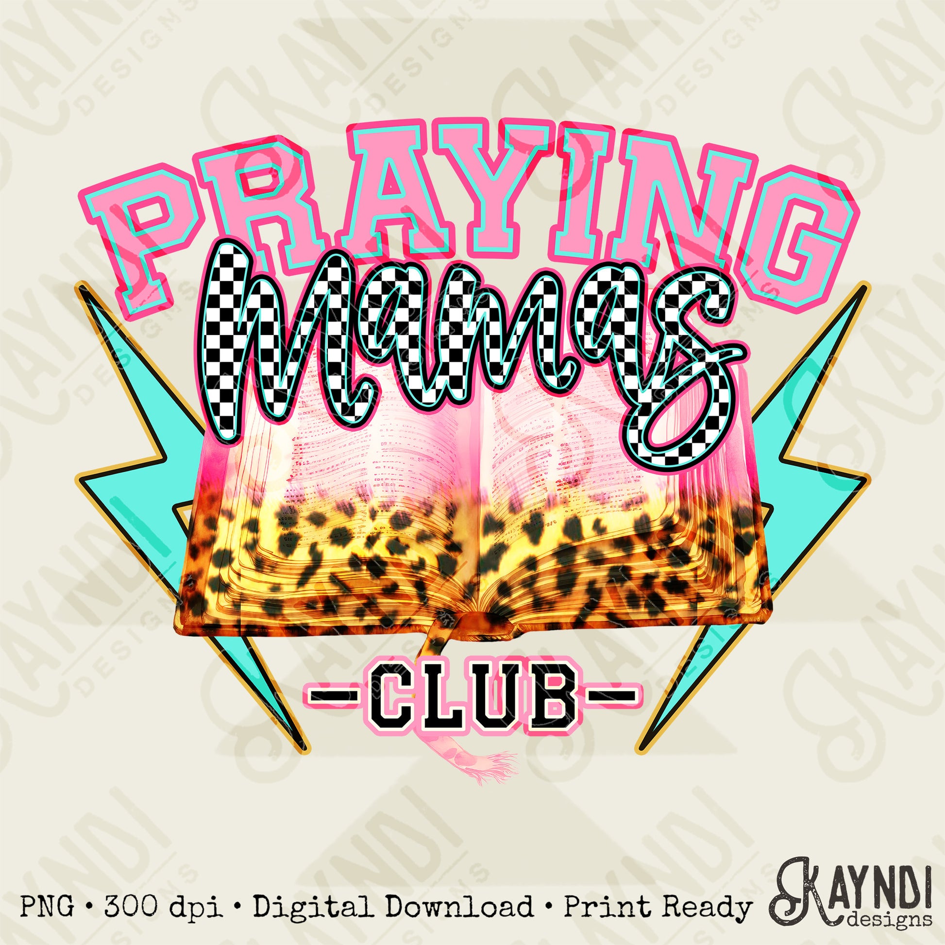 Praying Mamas Club Fierce Faith Collab Design Sublimation Design PNG Digital Download Printable Cute Pink Leopard Checker Lightning Bolt Bible