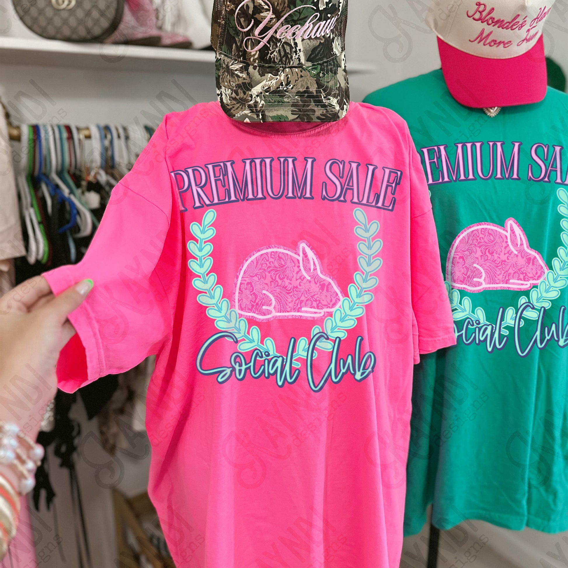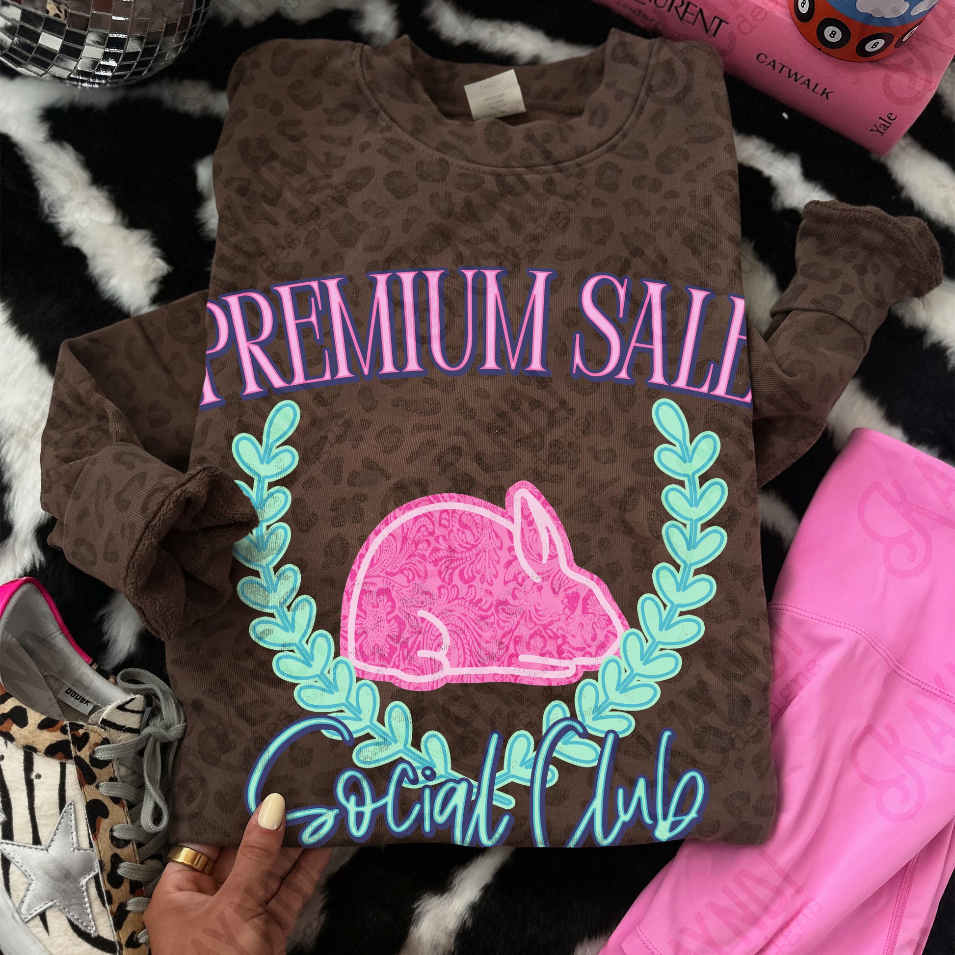 Premium Sale Social Club Rabbit Leather Sublimation Design PNG Digital Download Pink Teal