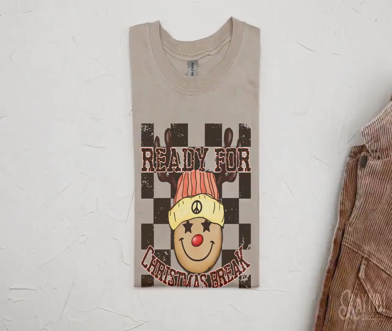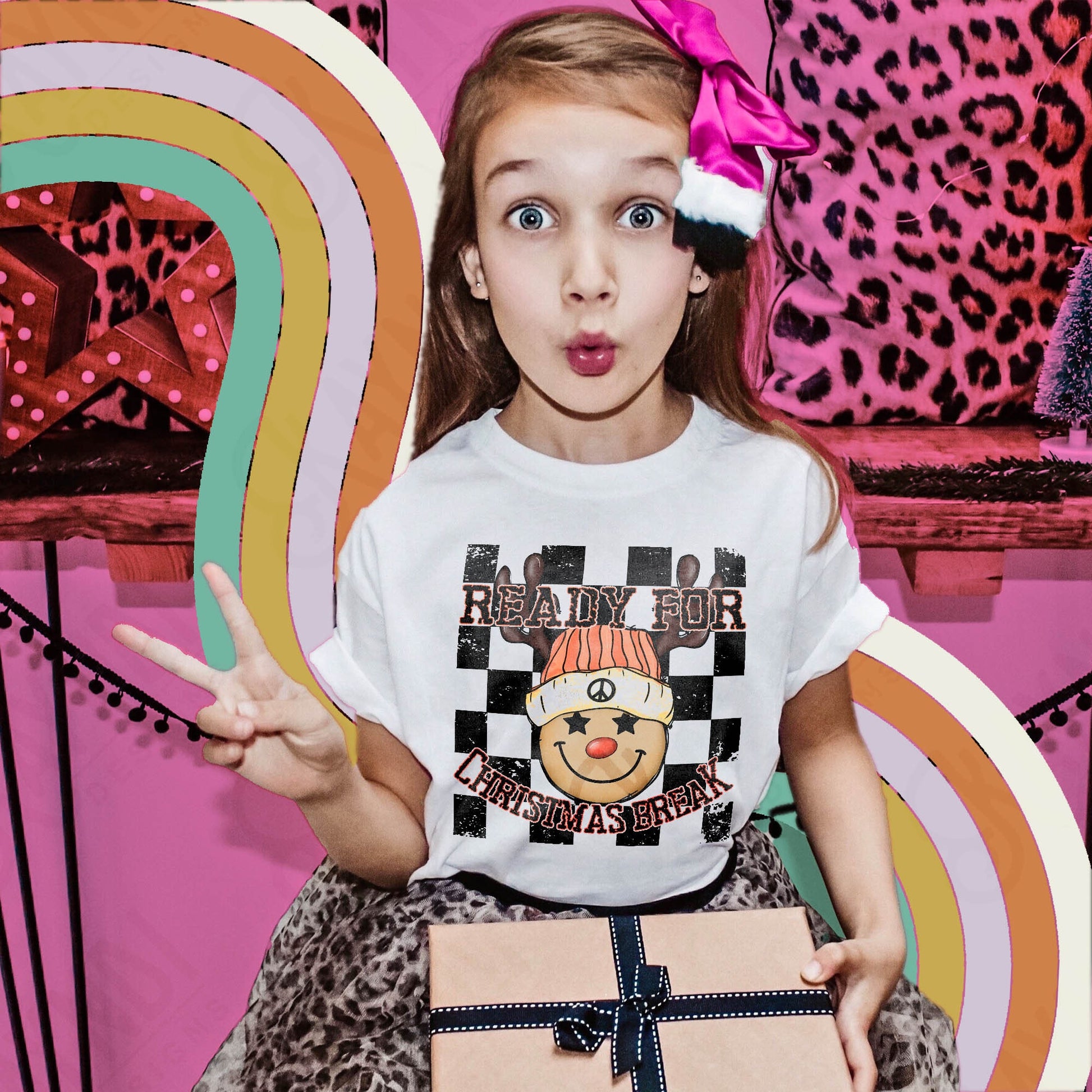 Ready for Christmas Break Reindeer Orange Beanie Hat Sublimation Design PNG Digital Download Printable Kids Christmas School Teacher Checker