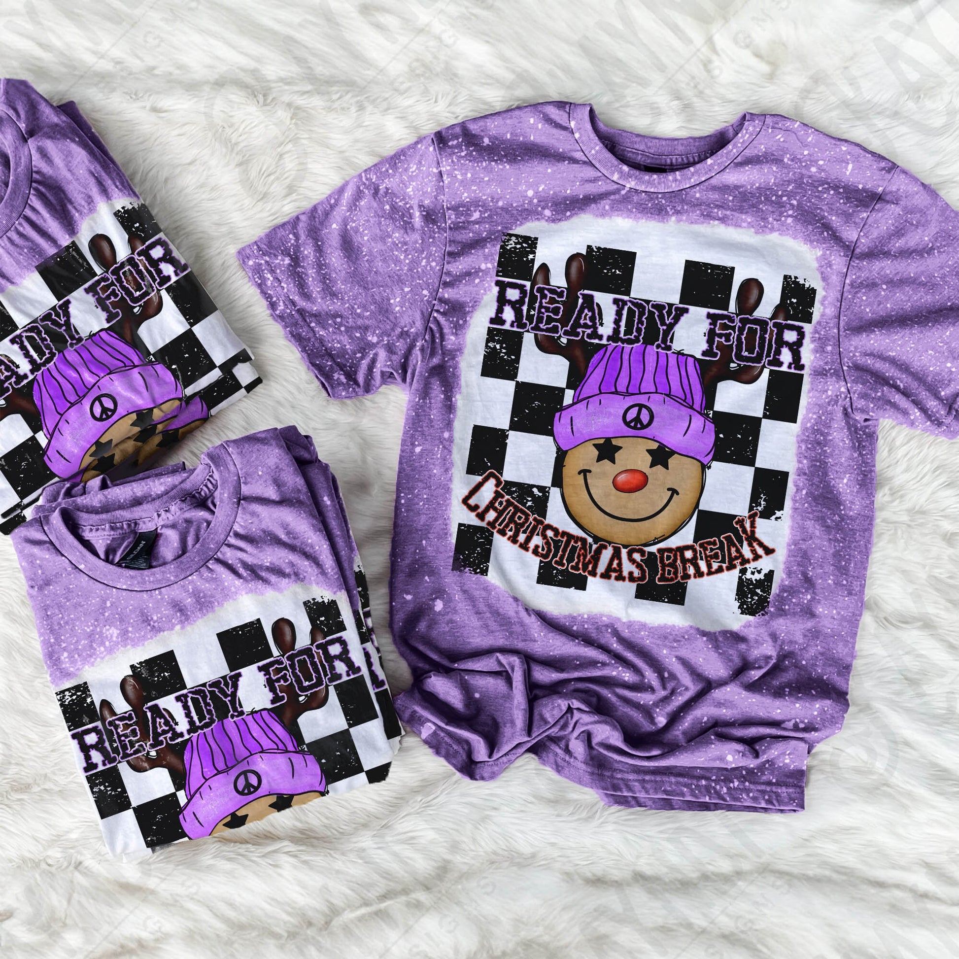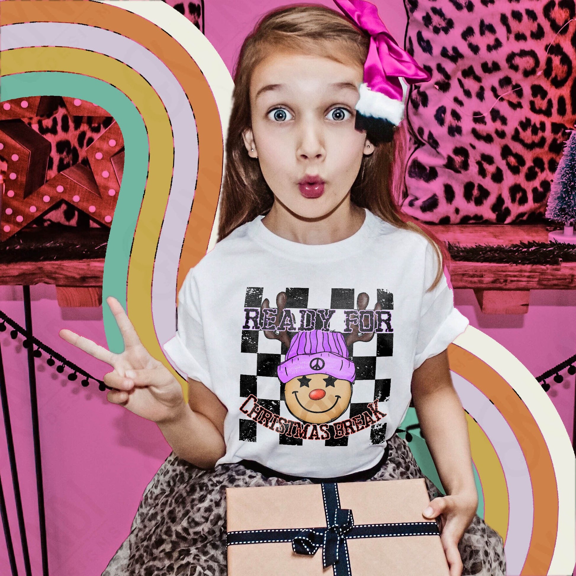 Ready for Christmas Break Reindeer Purple Beanie Hat Sublimation Design PNG Digital Download Printable Kids Christmas School Teacher Checker