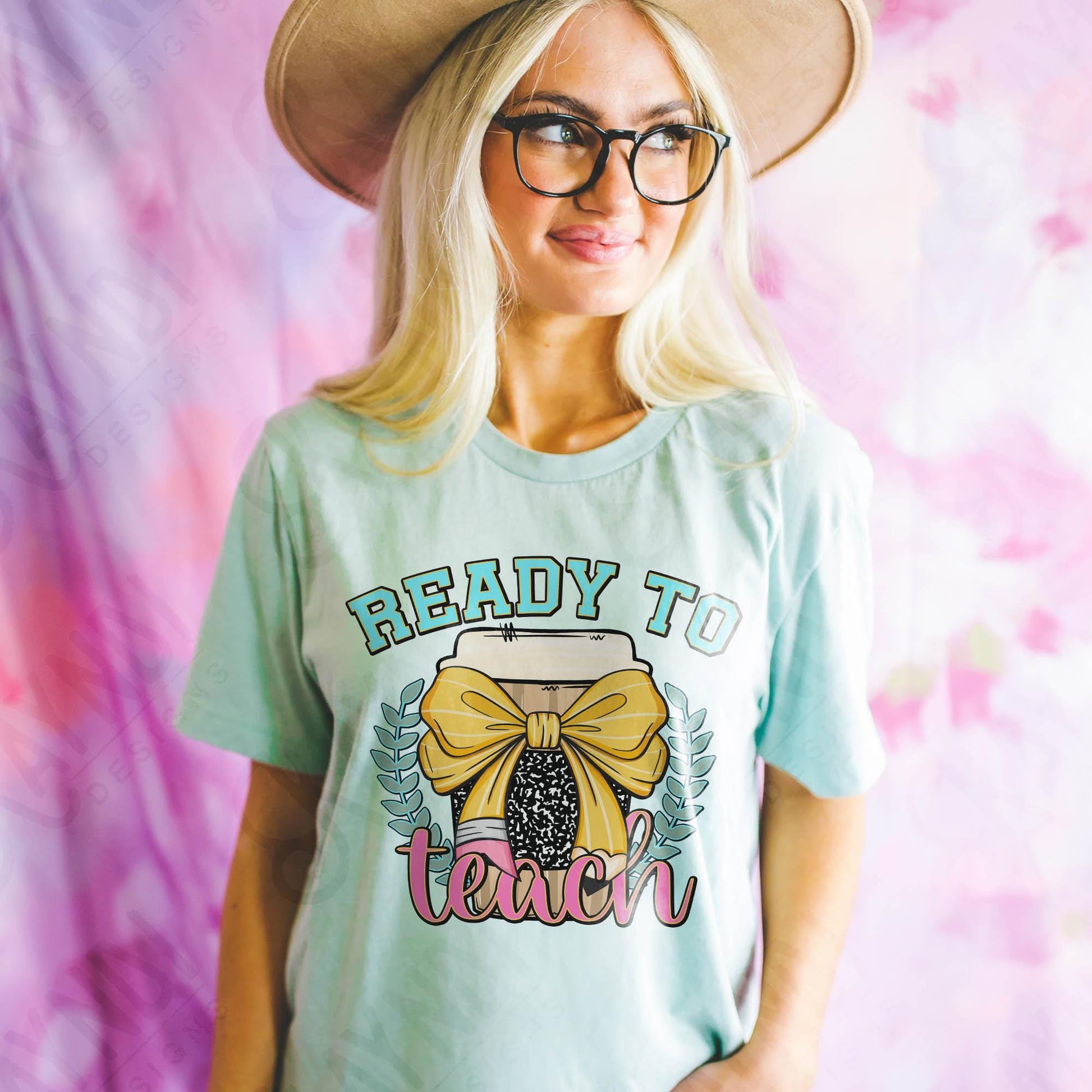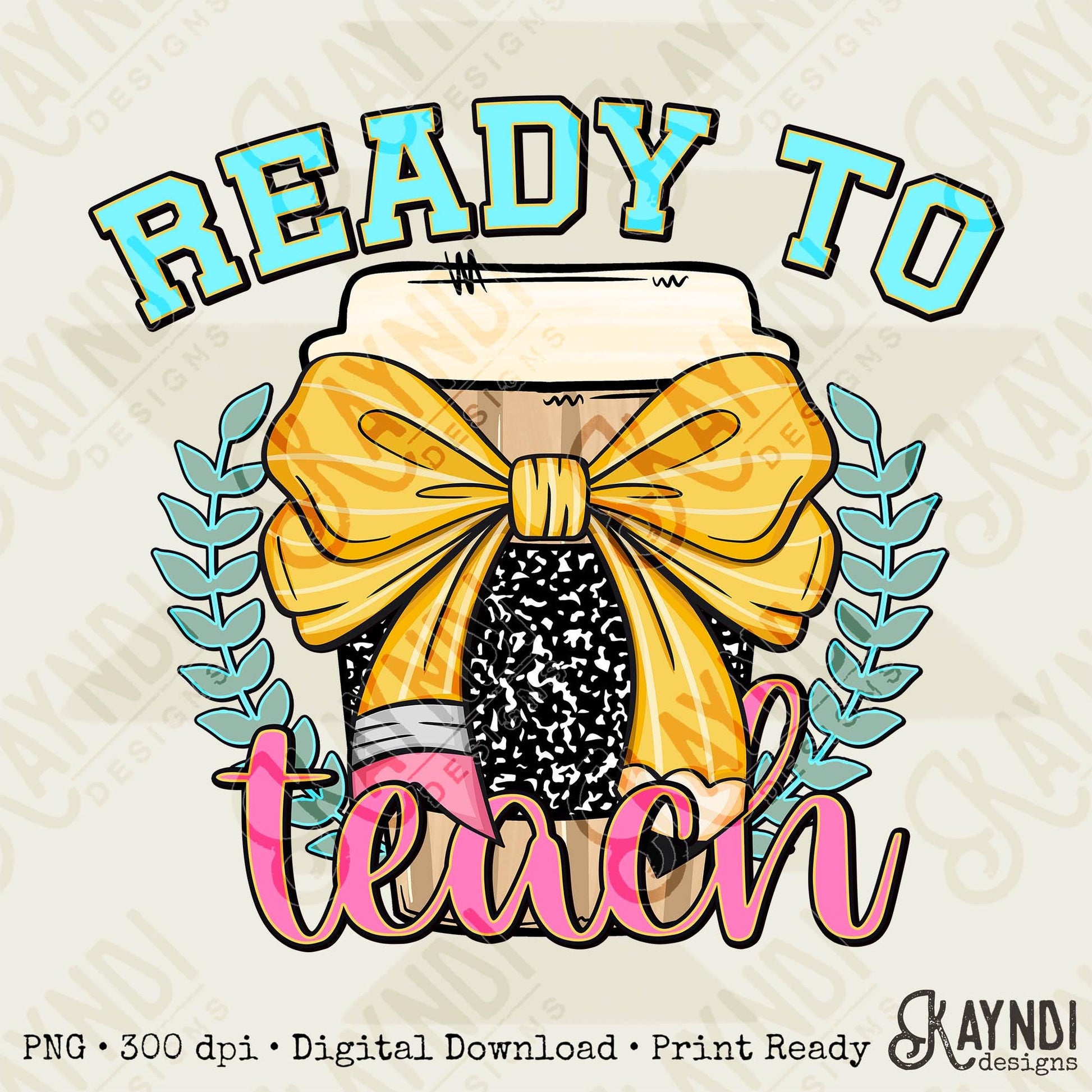 Ready to Teach Sublimation Design PNG Digital Download Printable School Supplies Teacher Elementary School Coffee Bow Coquette