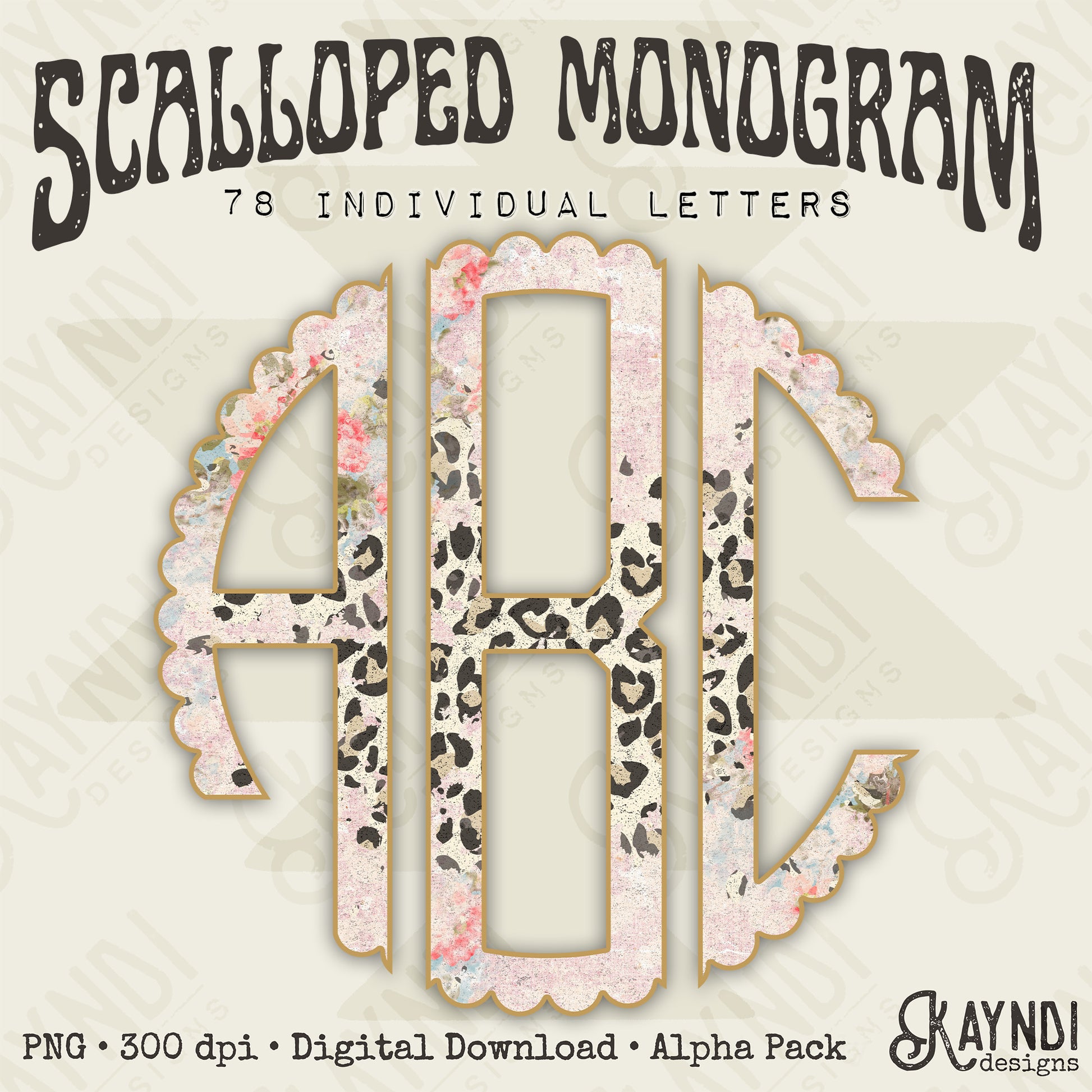 Rustic Chic Scalloped Monogram Set Sublimation Design PNG Digital Download Printable