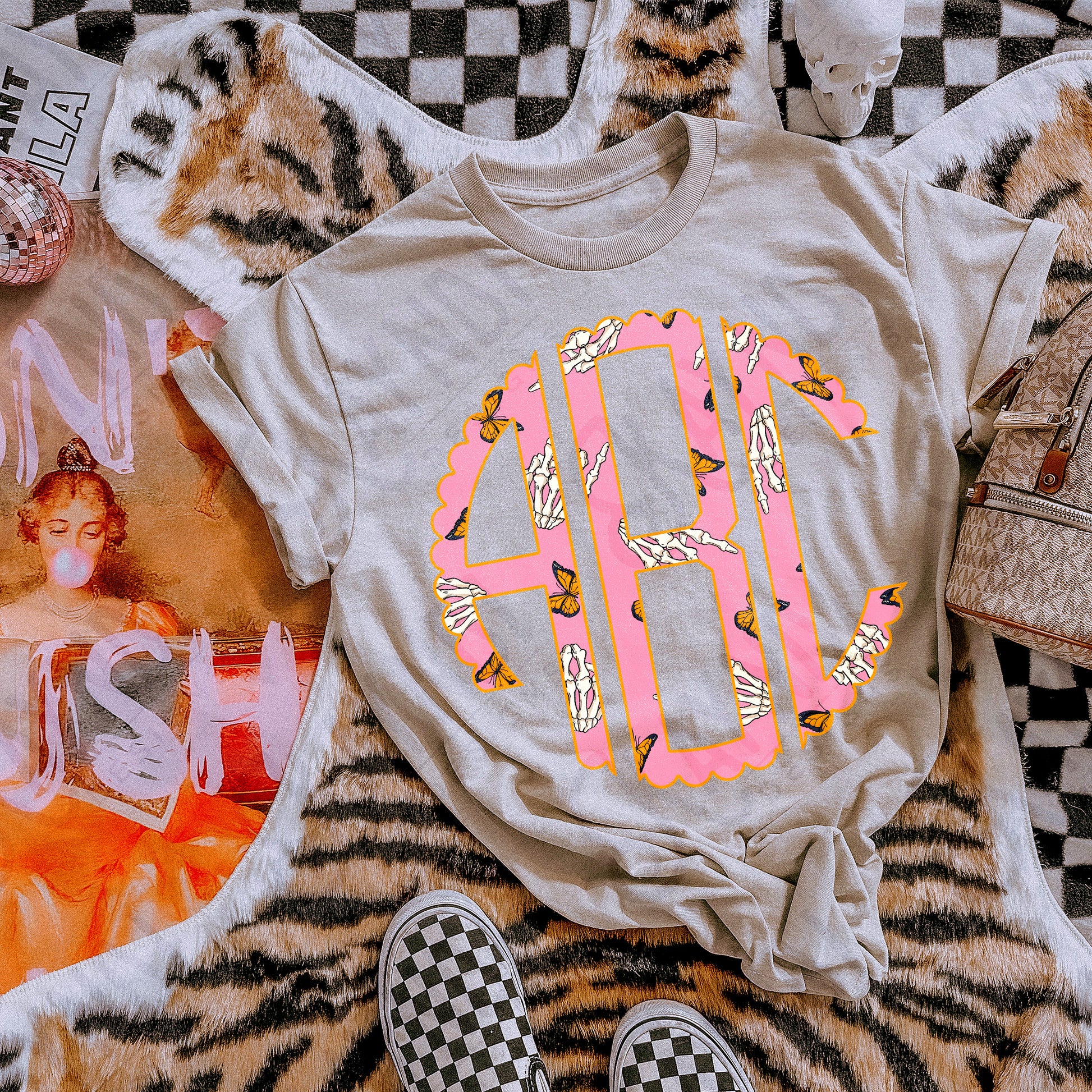 Skeleton Dreams Scalloped Monogram Set Sublimation Design PNG Digital Download Printable