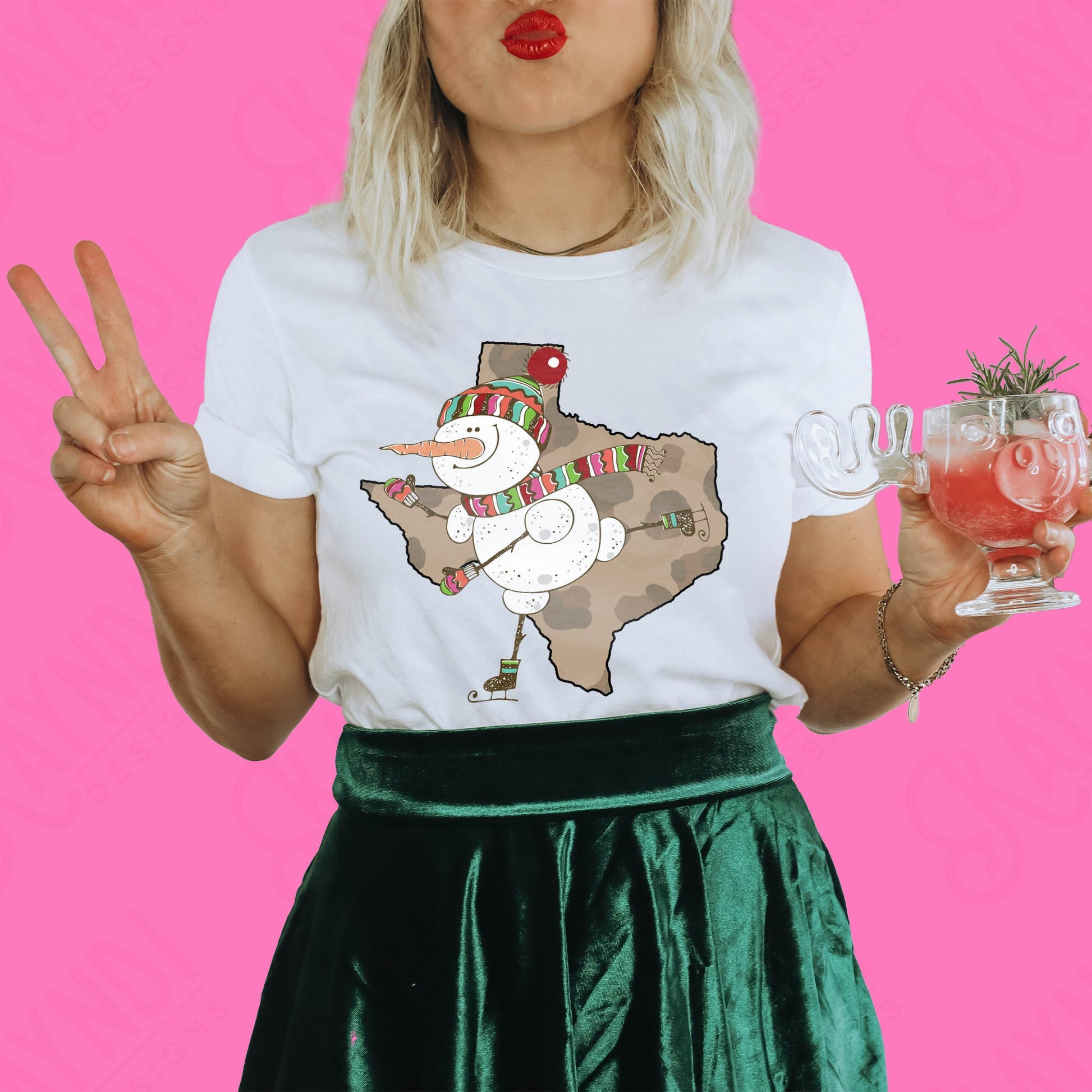 Snowman Custom State Sublimation PNG, Digital Download, Printable Christmas, Cute Kids Winter Design, Leopard, Doodle, Ice skating snowman