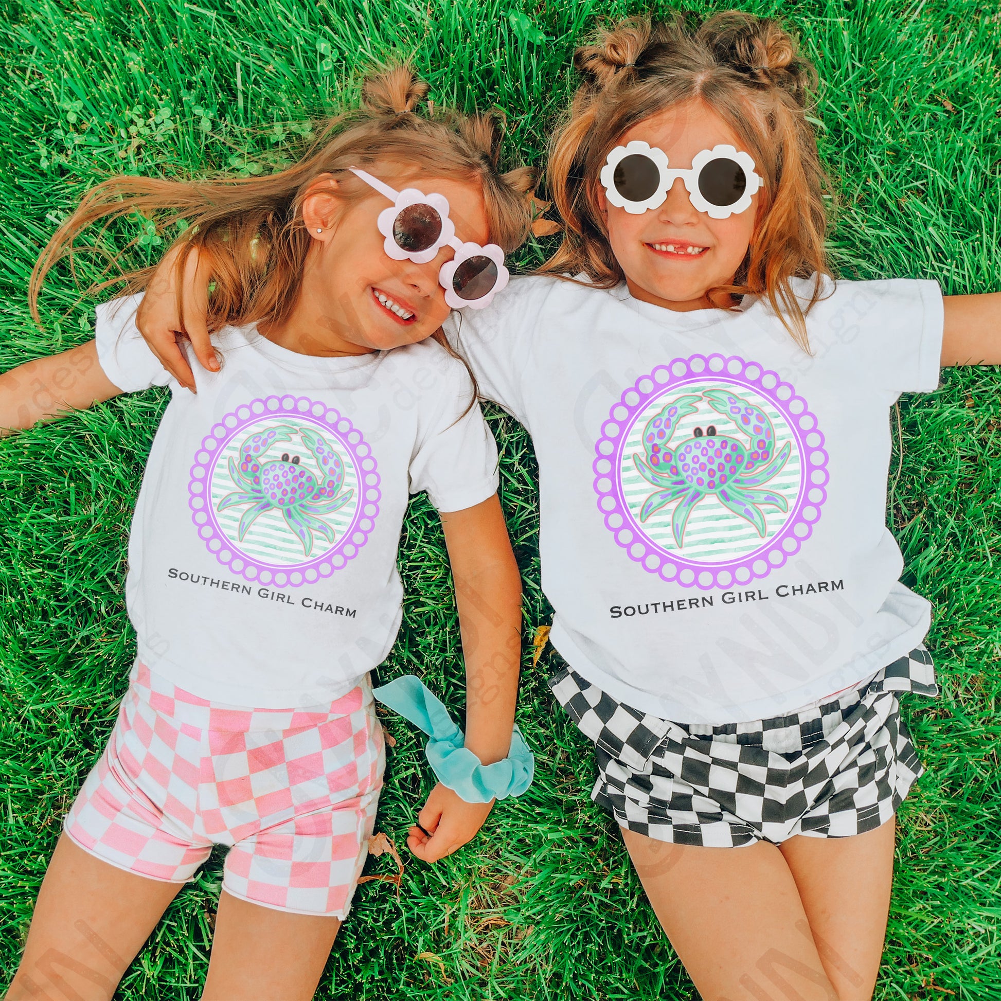 Southern Girl Charm Crab Sublimation Design PNG Digital Download Printable Southern Preppy Beach Summer Girly Prep Preppy Purple Teal