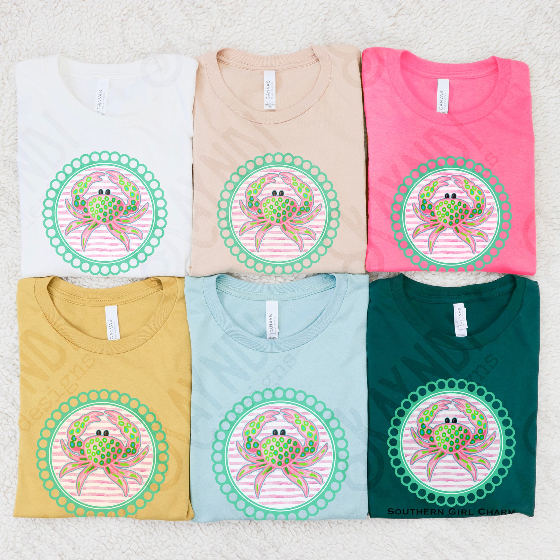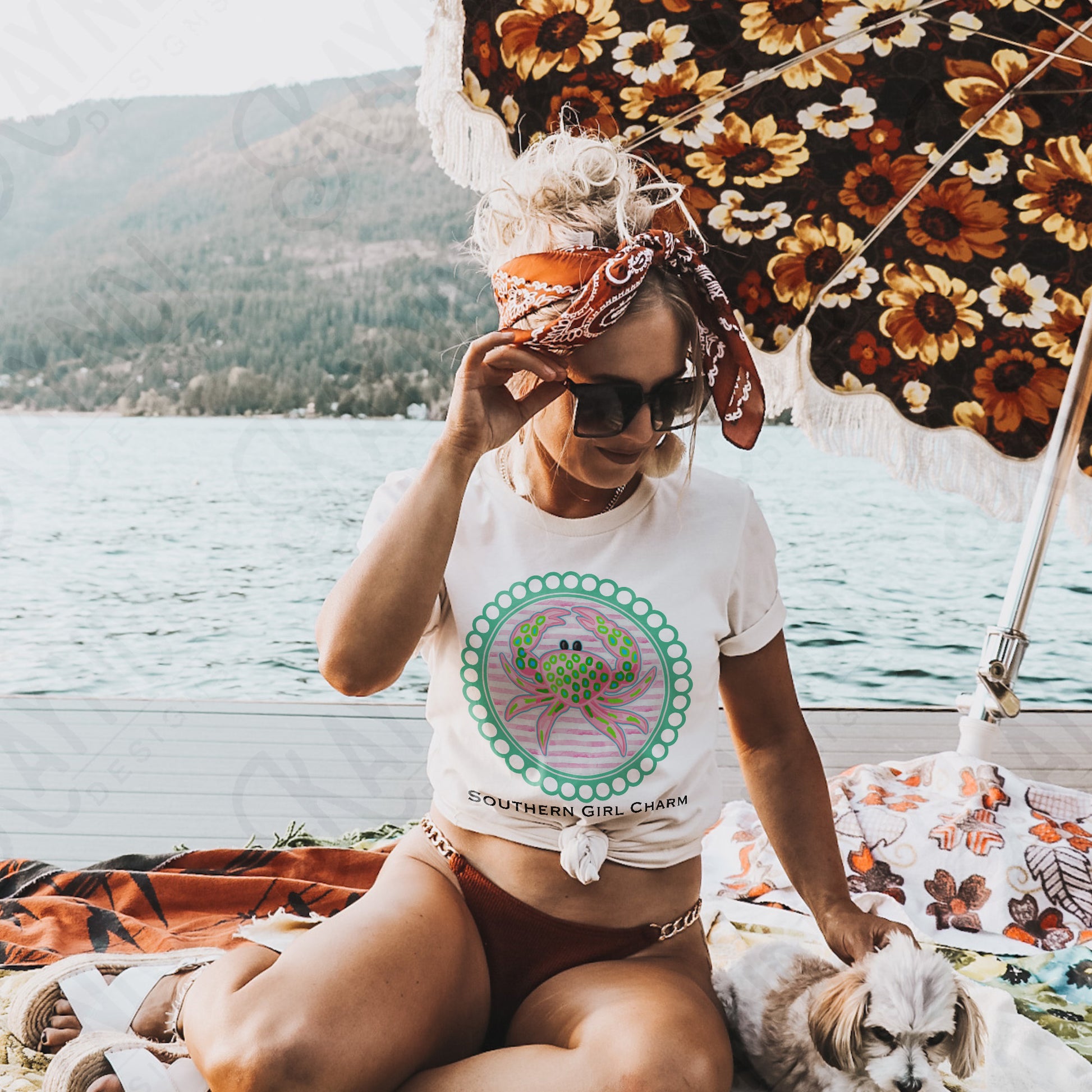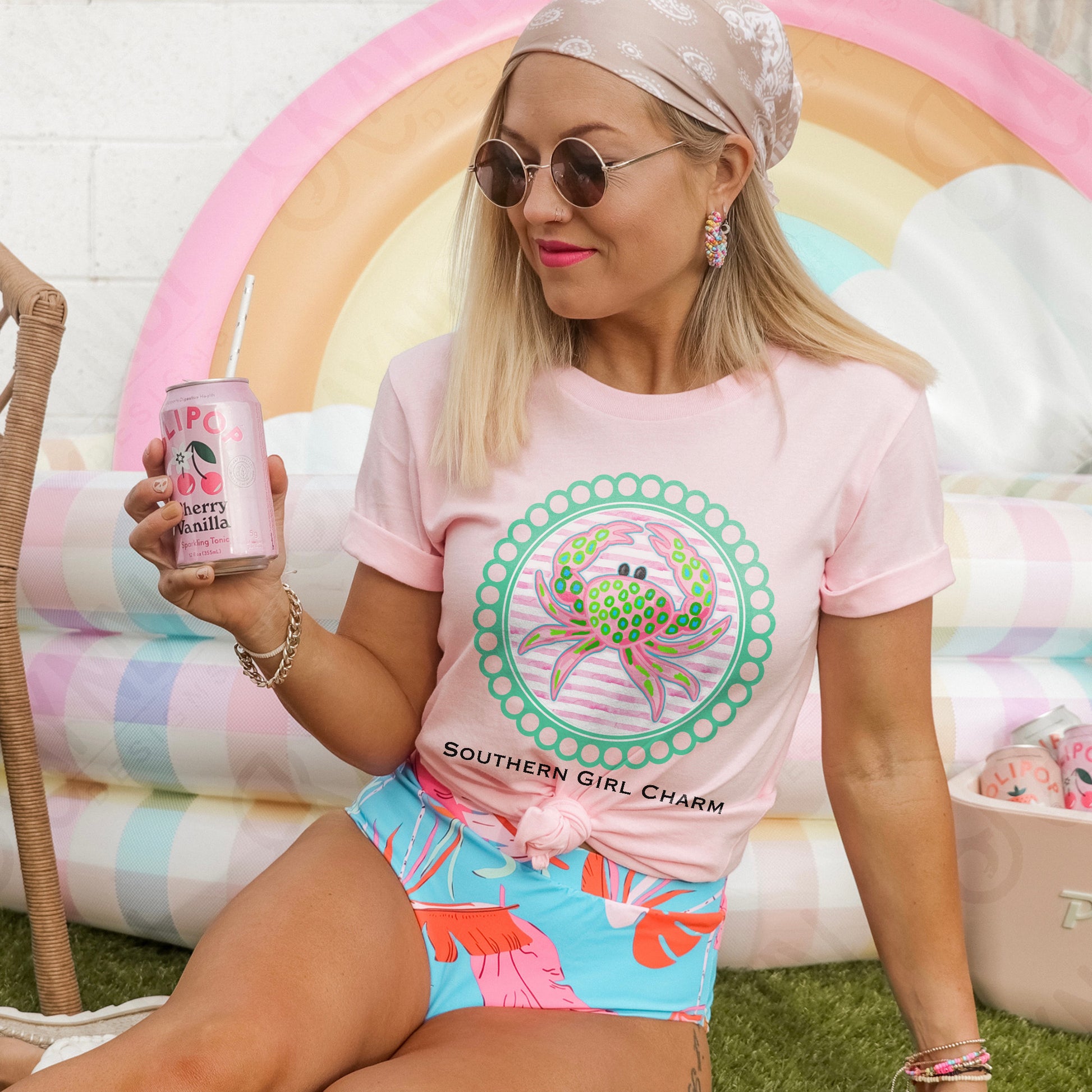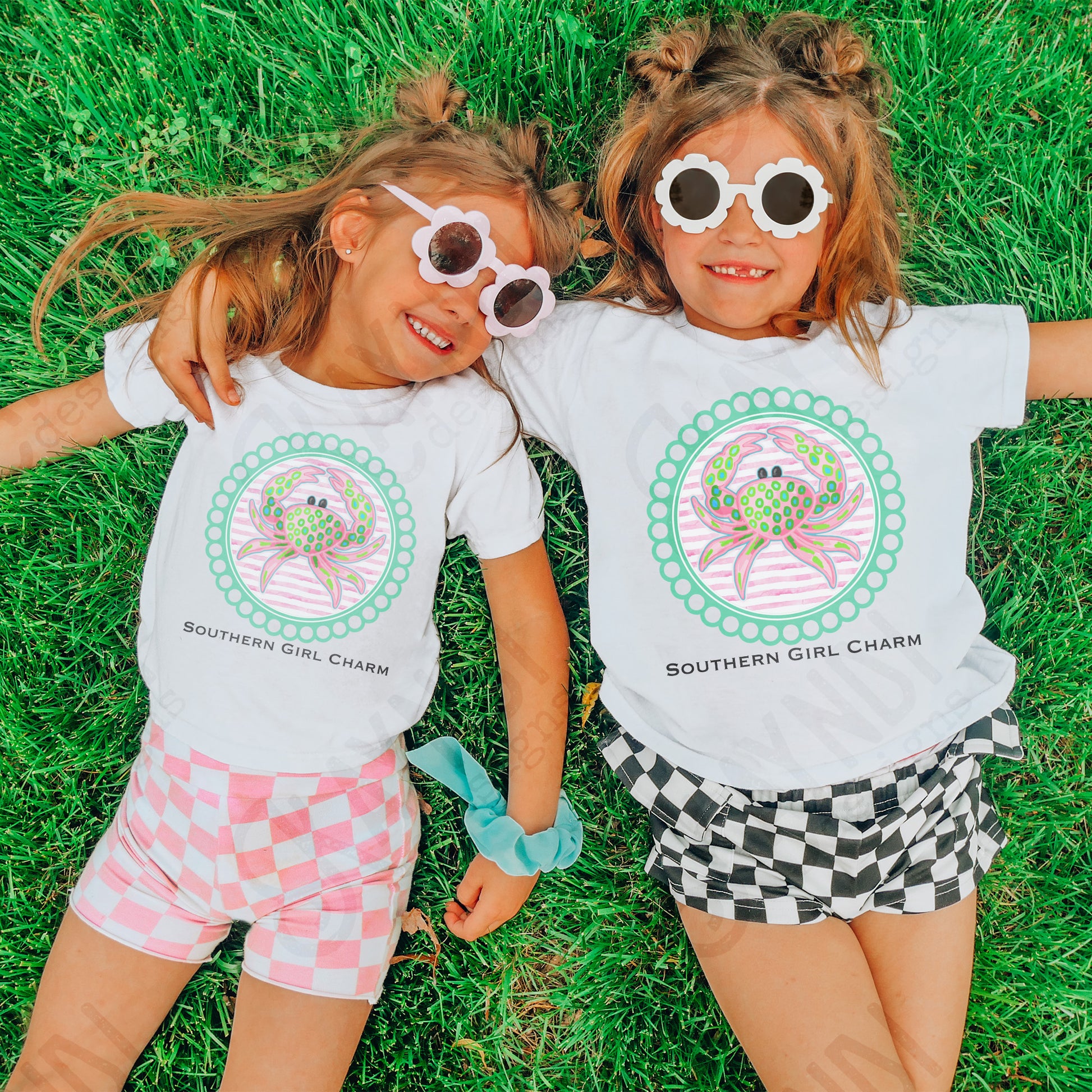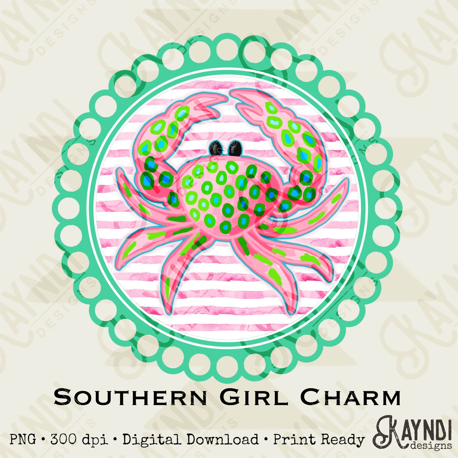 Southern Girl Charm Crab Sublimation Design PNG Digital Download Printable Southern Preppy Beach Summer Girly Prep Preppy Pink Teal