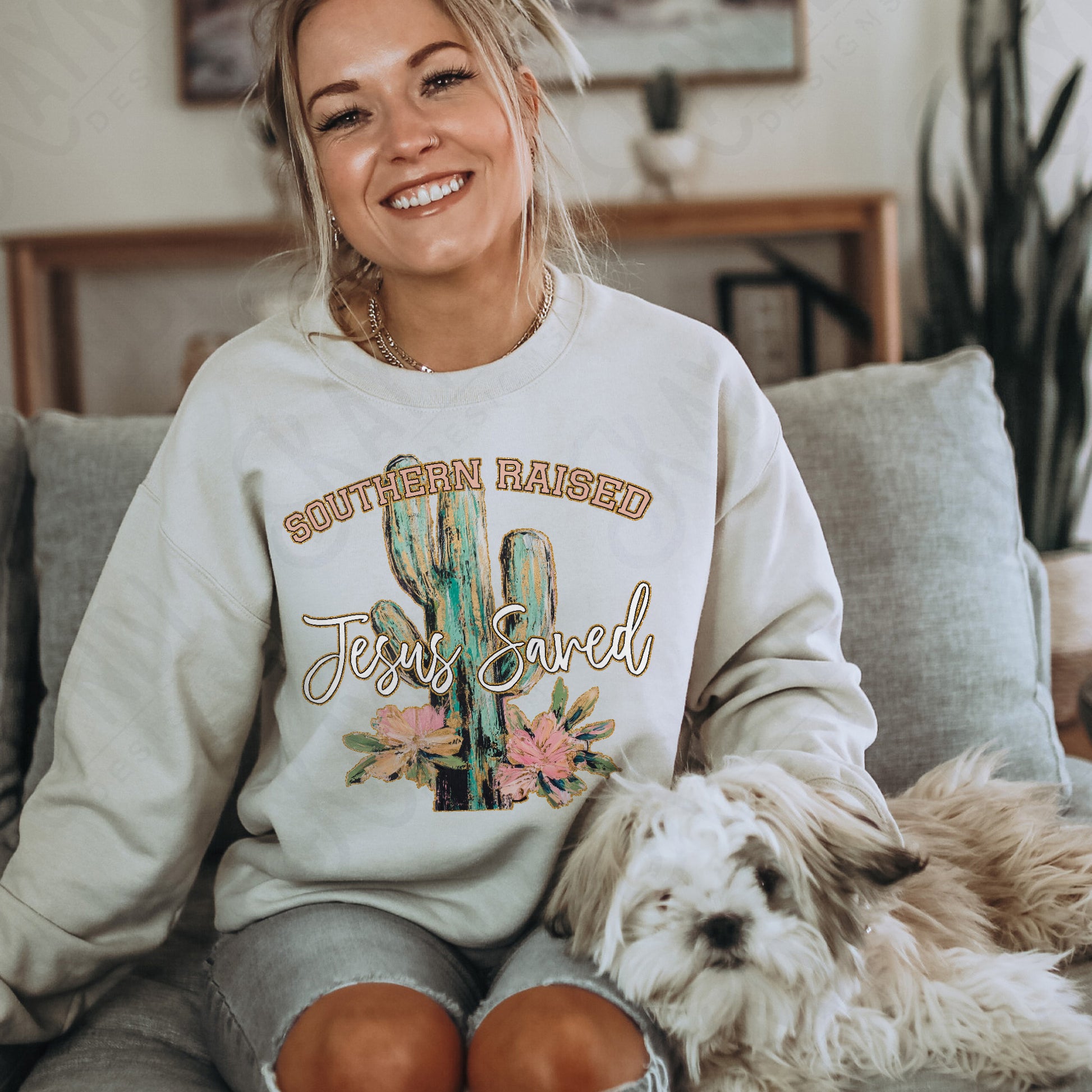 Southern Raised Jesus Saved Sublimation Design PNG Digital Download Printable Cactus Desert