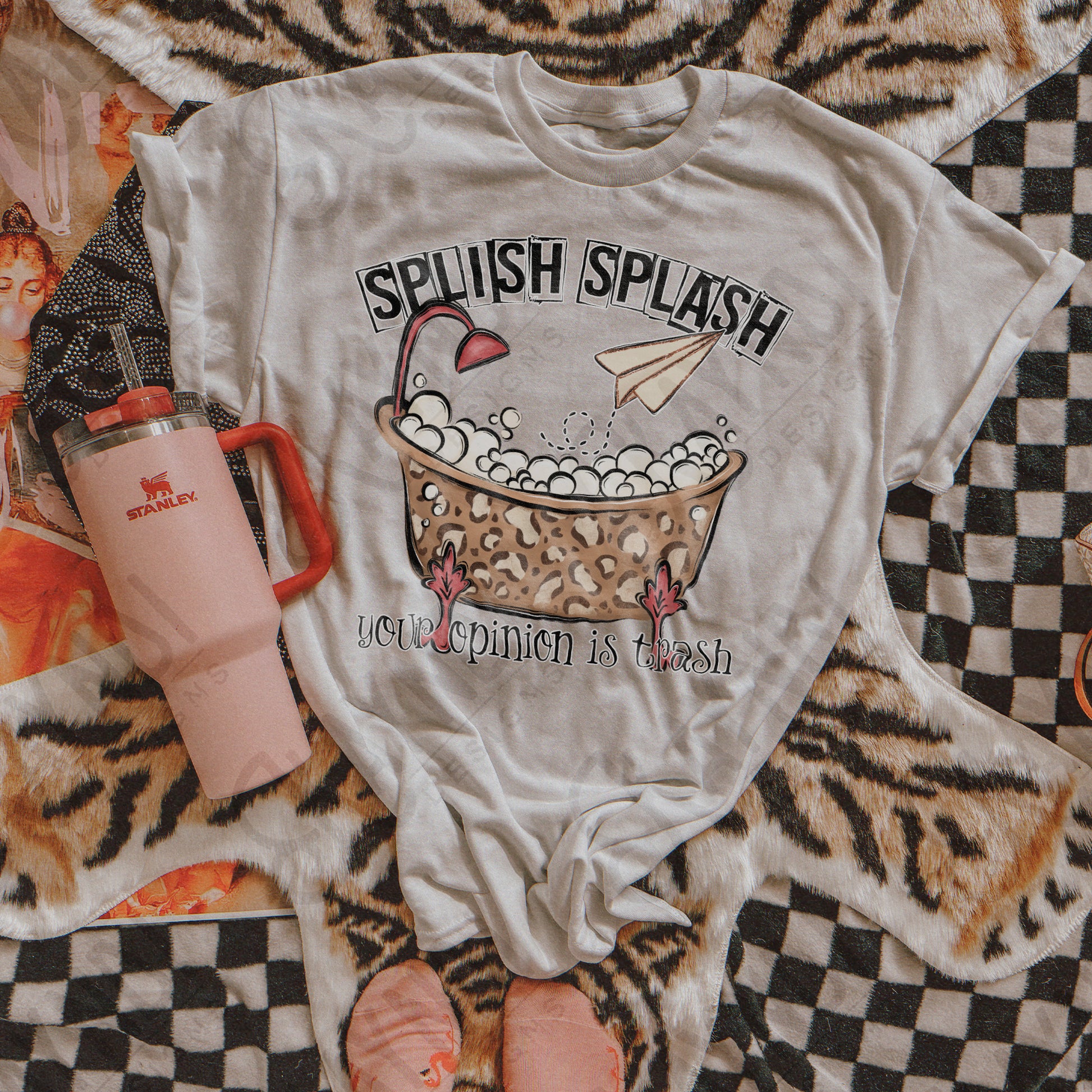 Splish Splash Your Opinion is Trash Leopard Sublimation Design PNG Digital Download Bathtub Bubbles