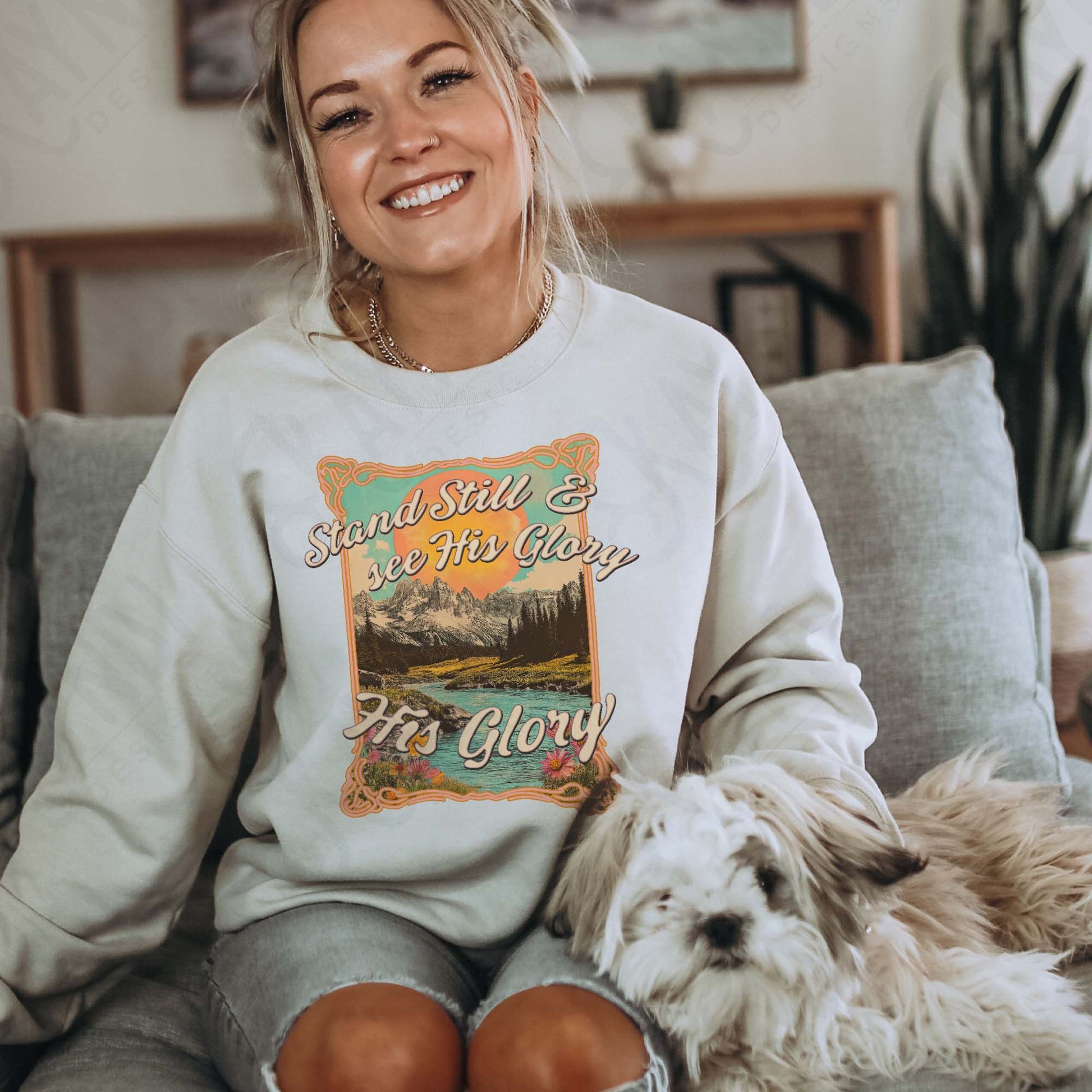 Stand Still Sublimation Design PNG Digital Download Faith Mountains Scenic Christian