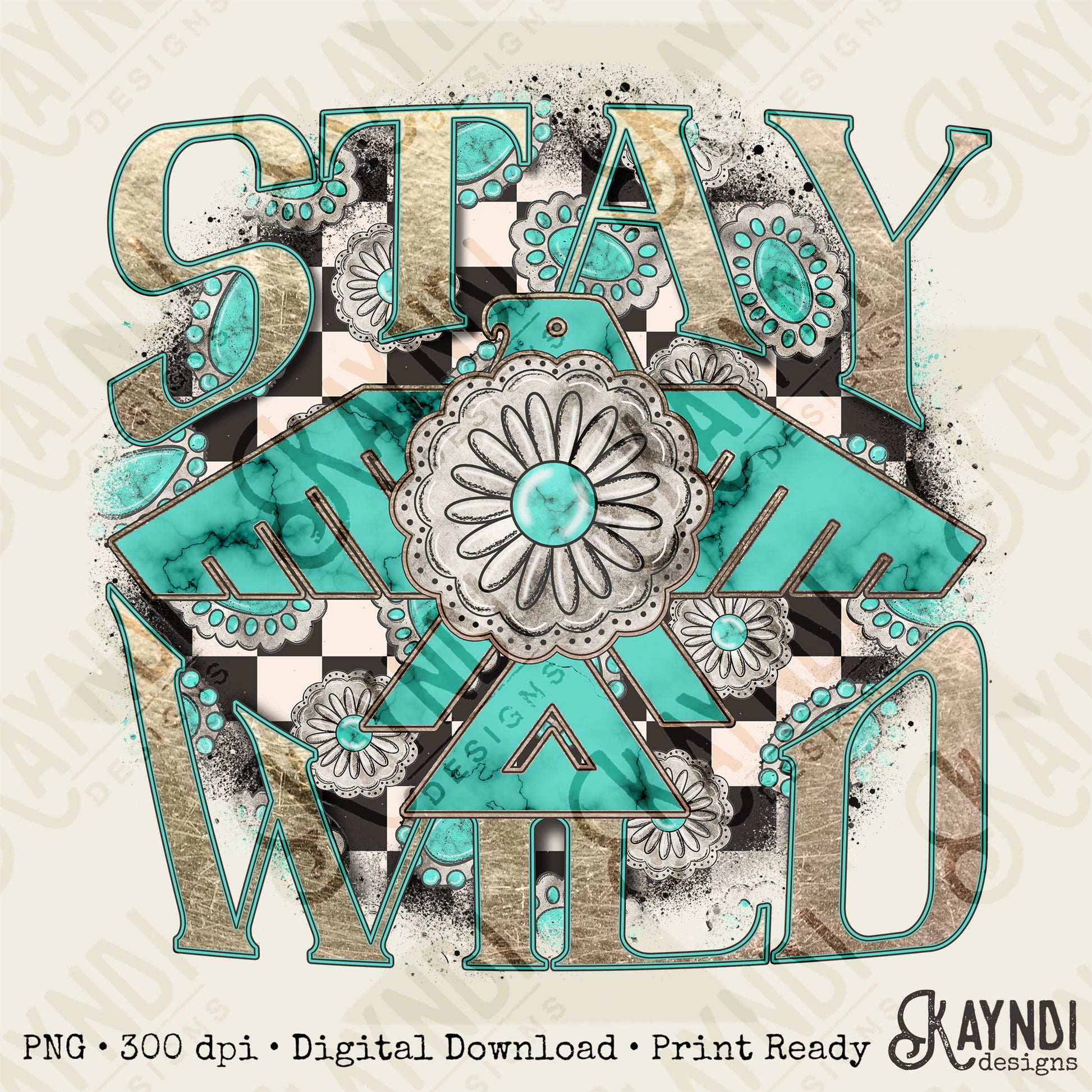 Stay Wild Sublimation Design PNG Digital Download Printable Turquoise Freebird Checkered