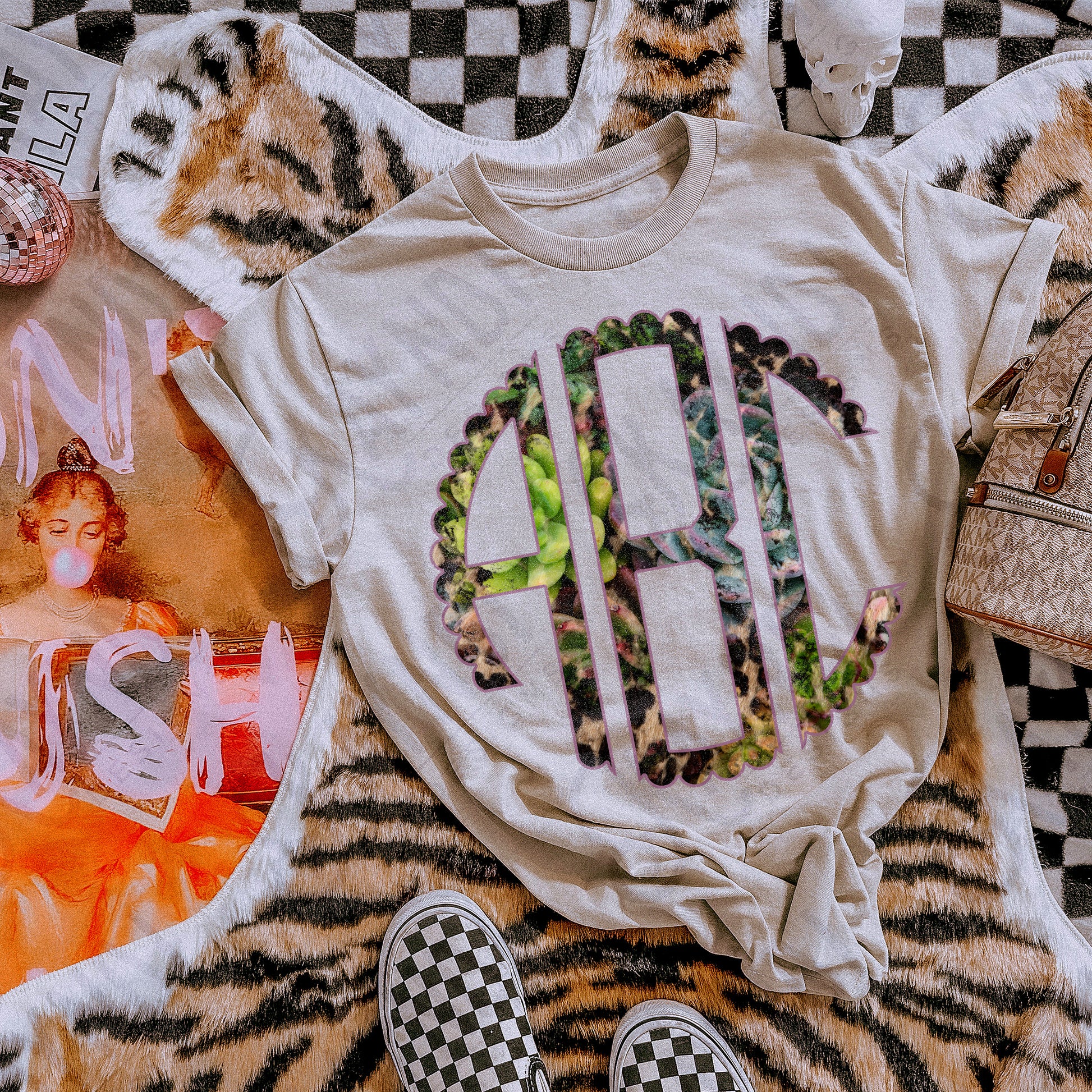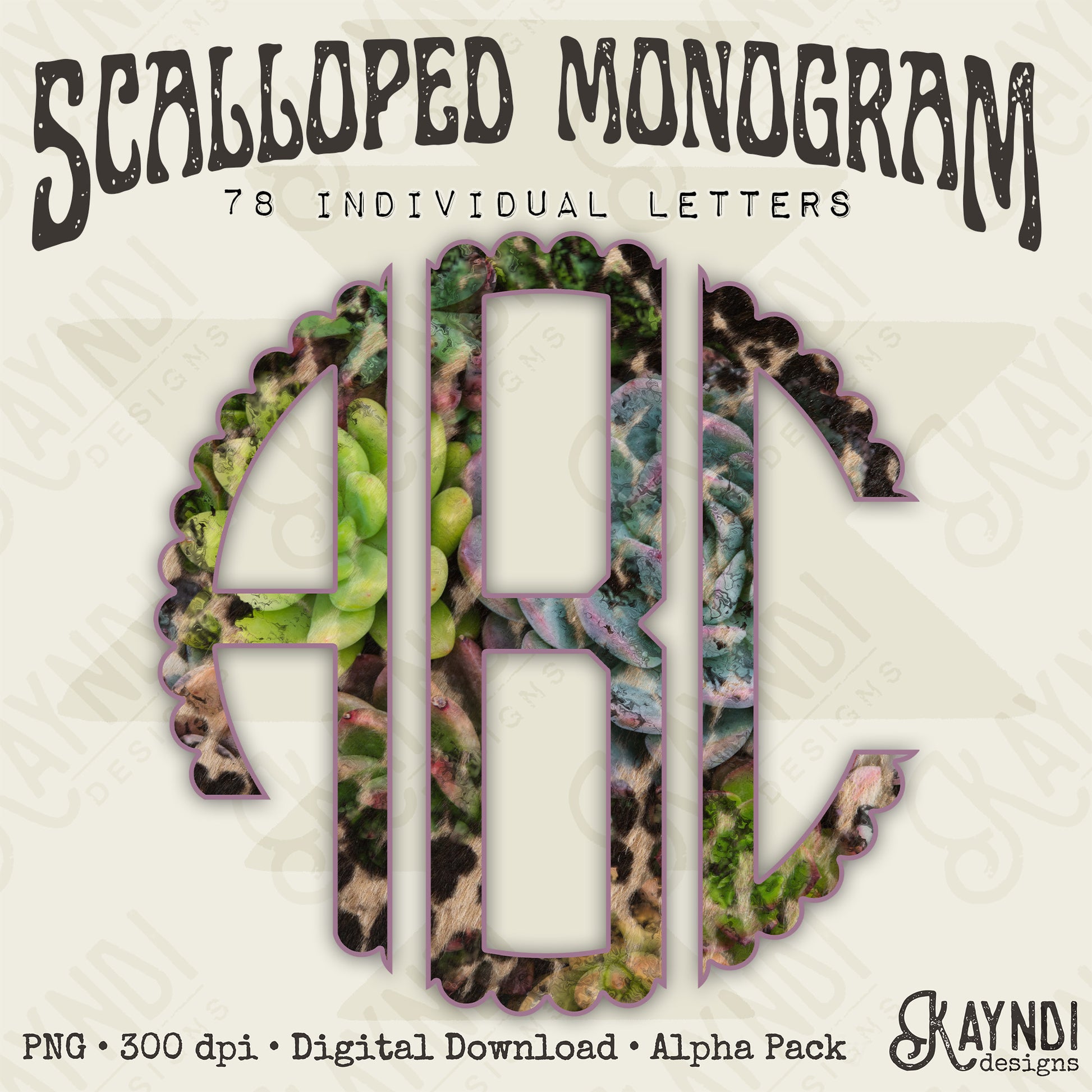 Succulent Spots Scalloped Monogram Set Sublimation Design PNG Digital Download Printable
