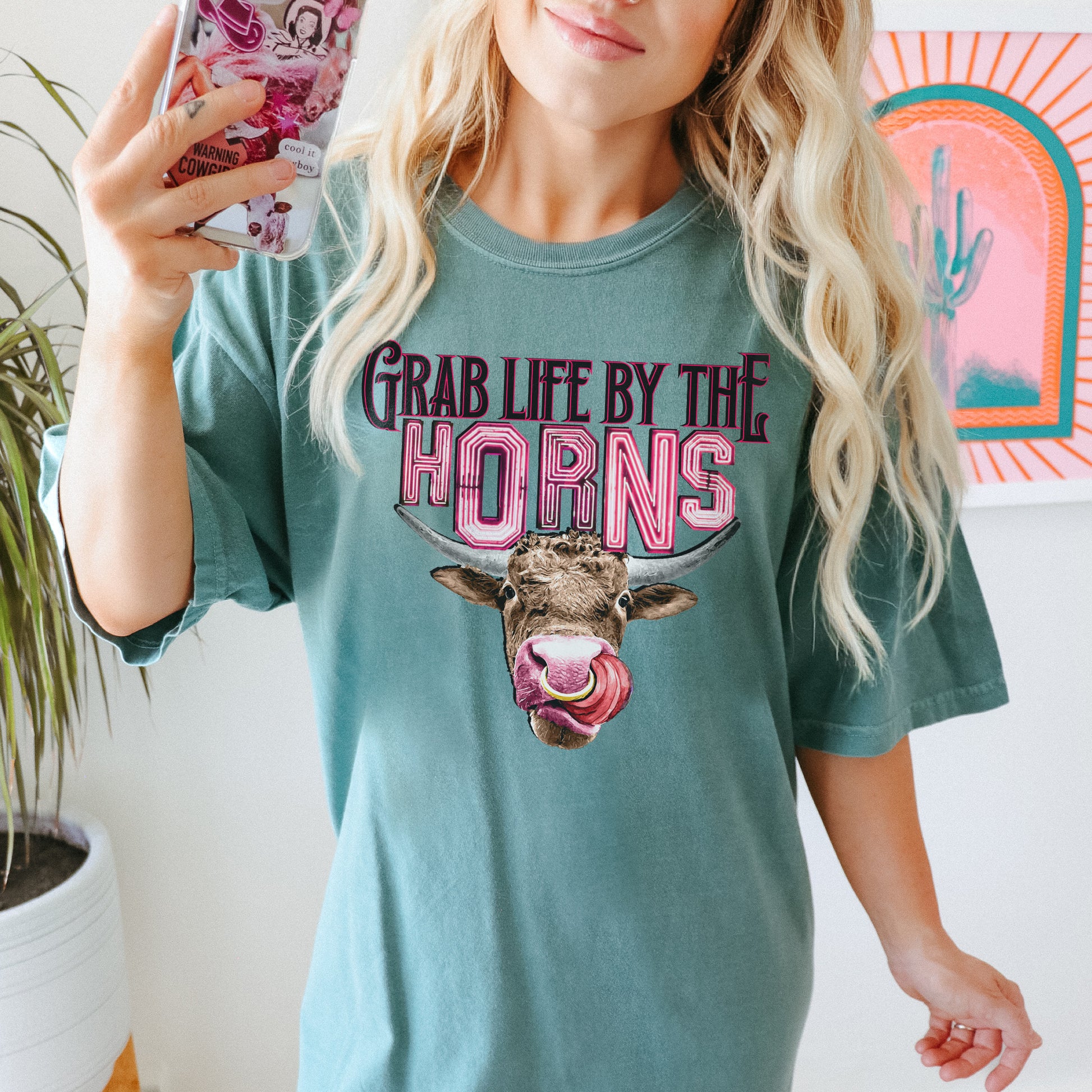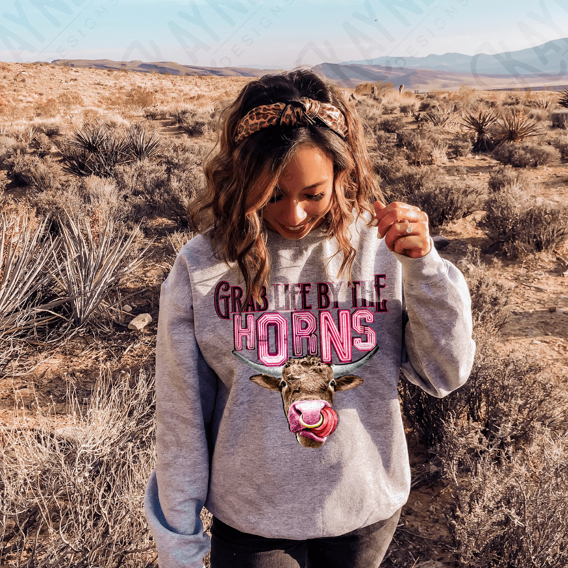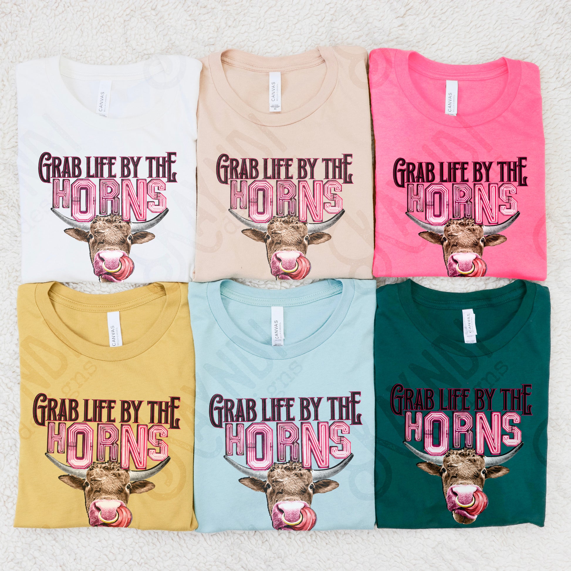 Take Life By The Horns Sublimation PNG Digital Download Printable Design Sublimation Country Western Southern Rodeo Steer Cow Cattle Head
