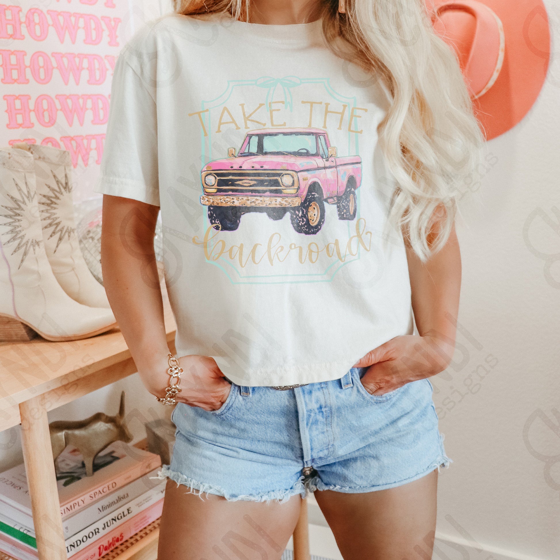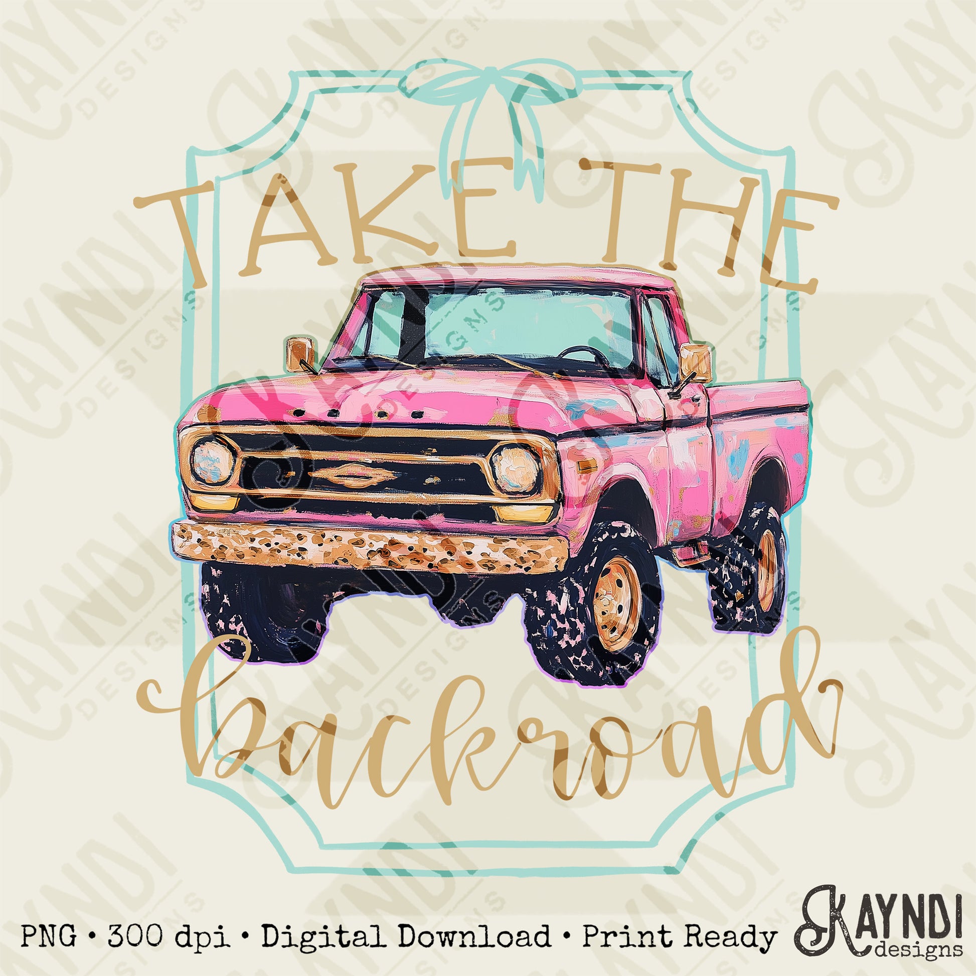 Take the Backroads Sublimation Design PNG Digital Download Printable Vintage Truck Pink