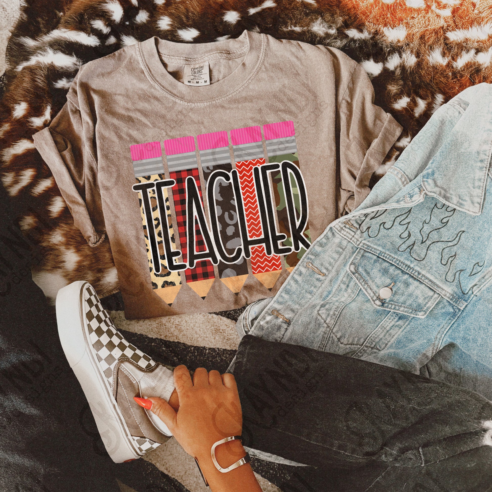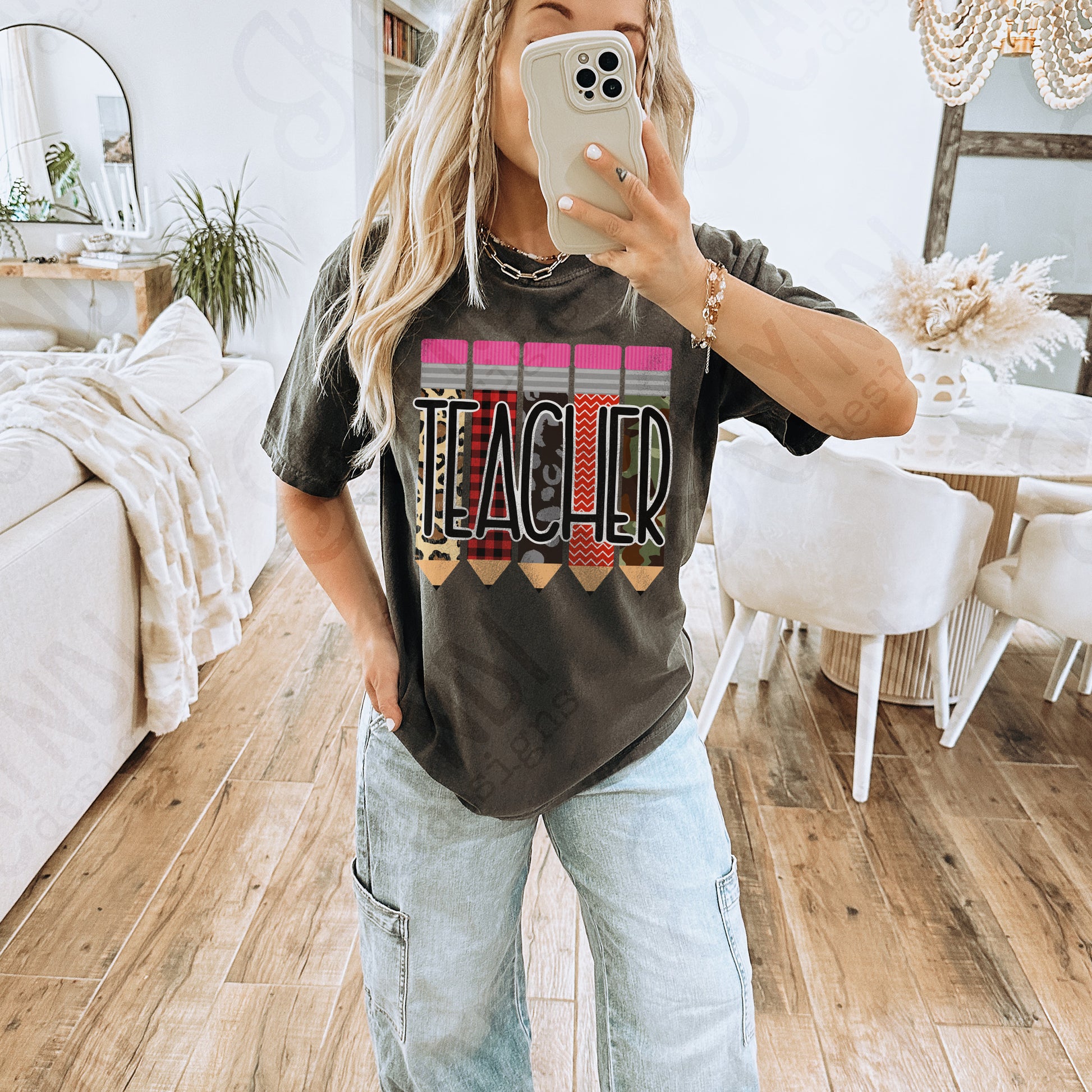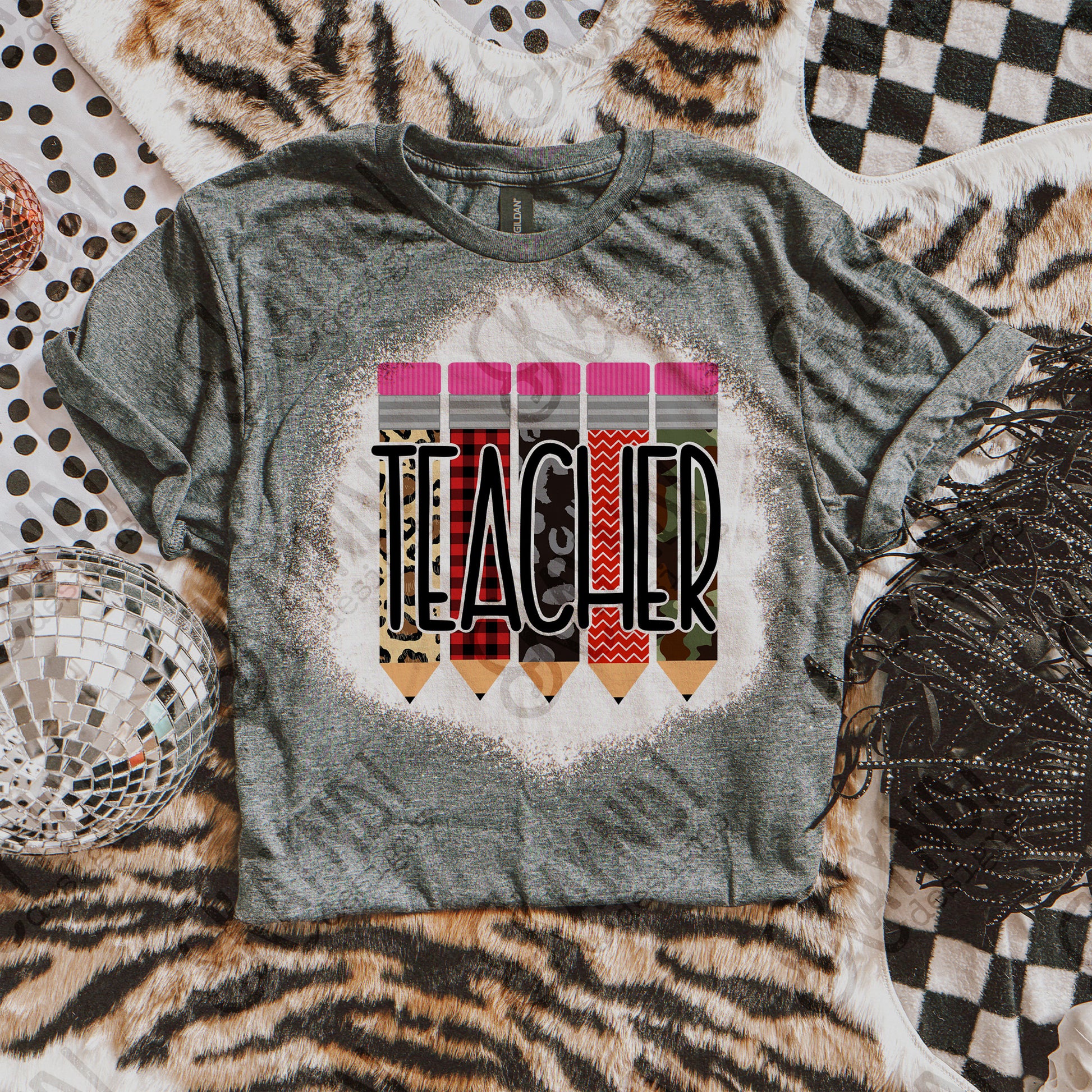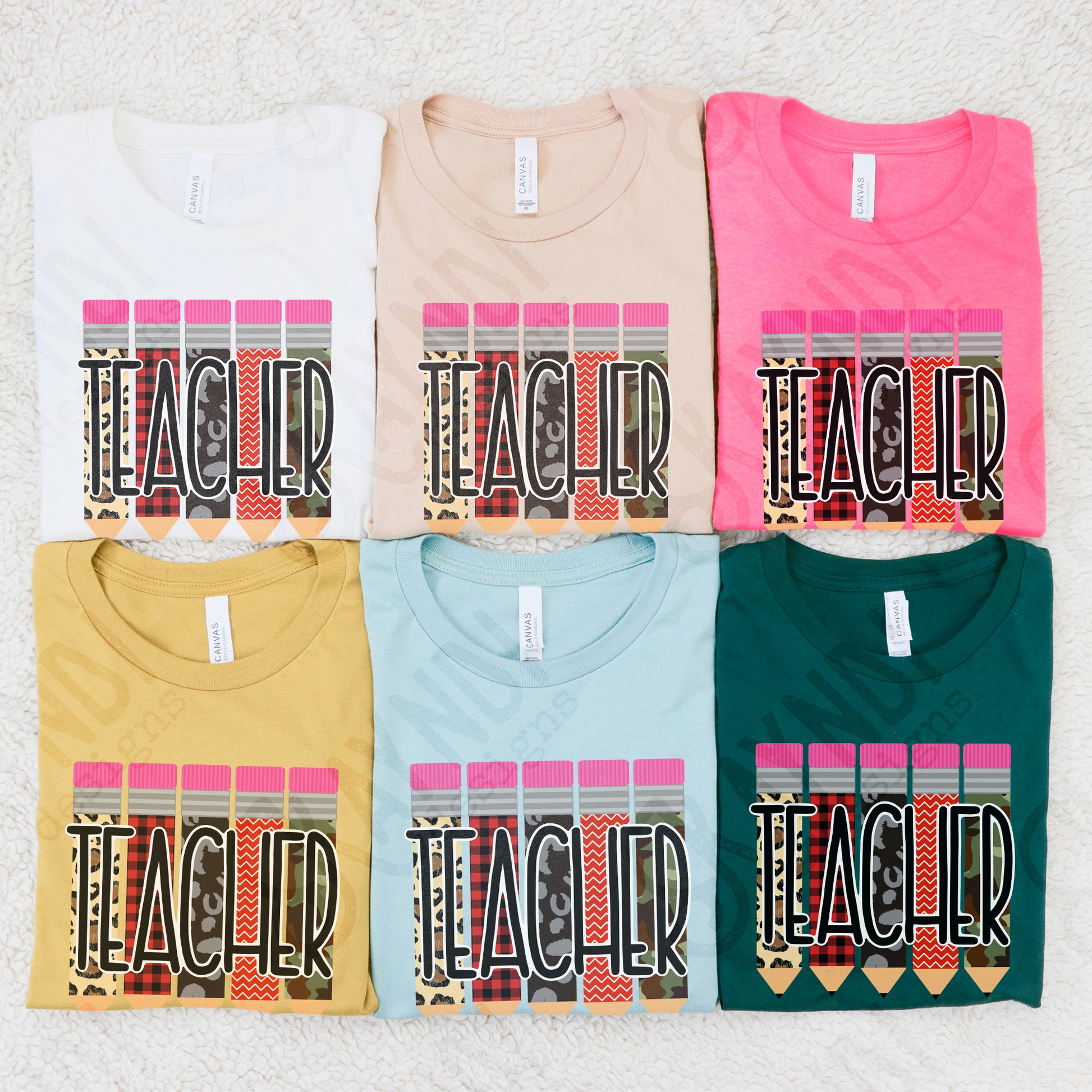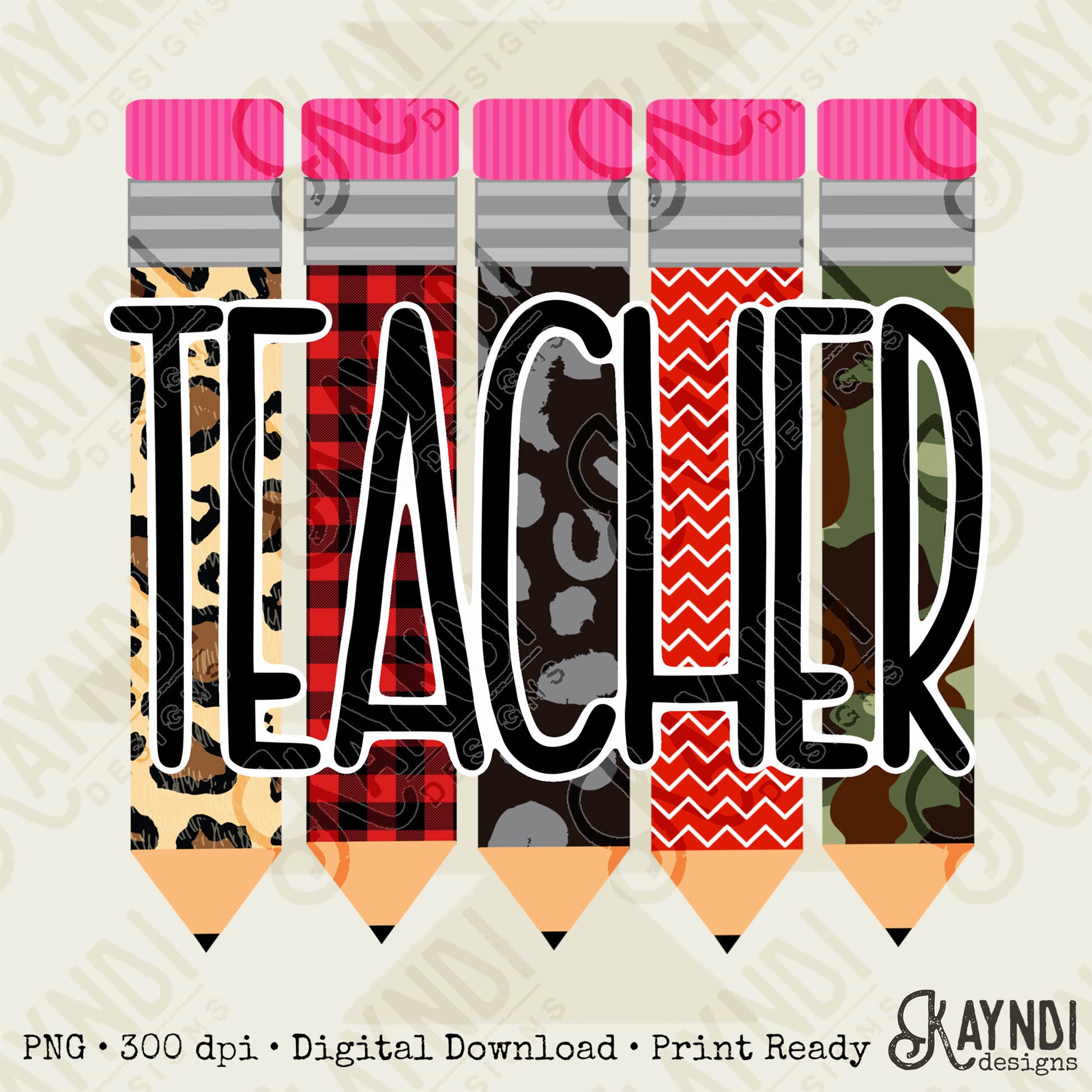 Teacher Pencils Camo Leopard Buffalo Sublimation Design PNG Digital Download Printable