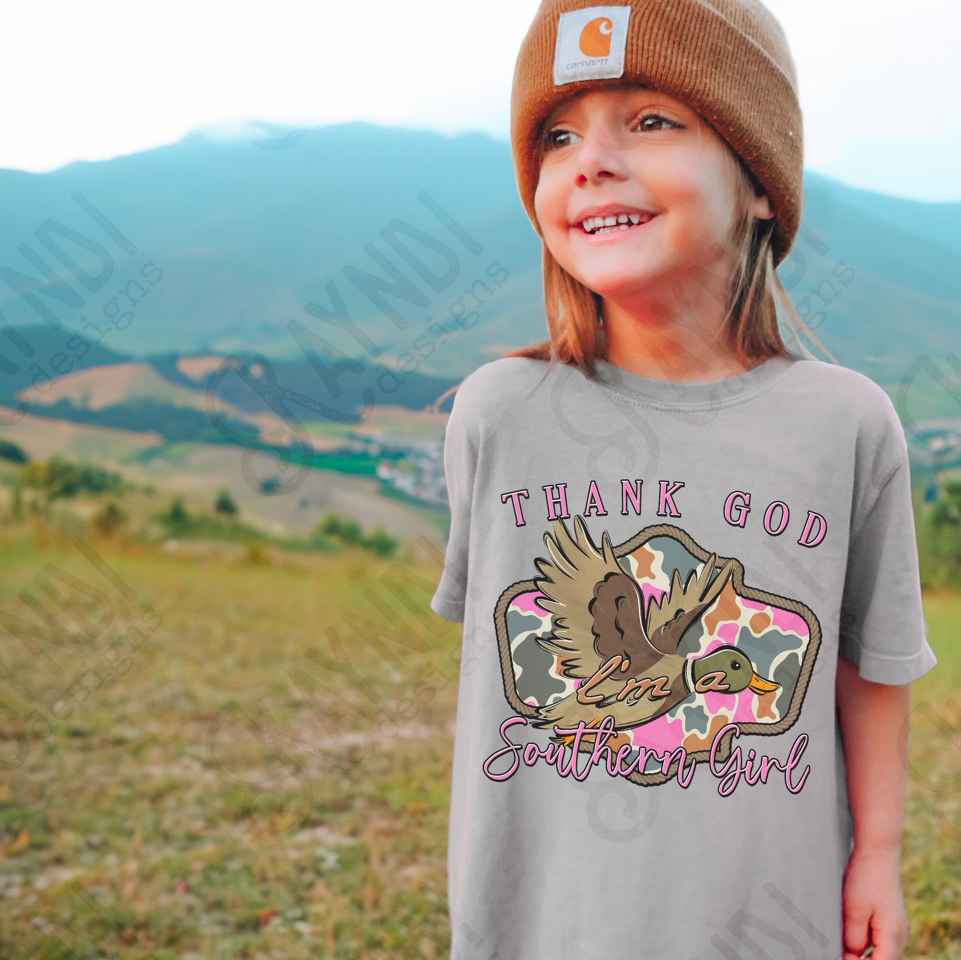 Thank God I'm a Southern Girl Duck Sublimation Design PNG Digital Download Hunting Outdoors Pink Camo