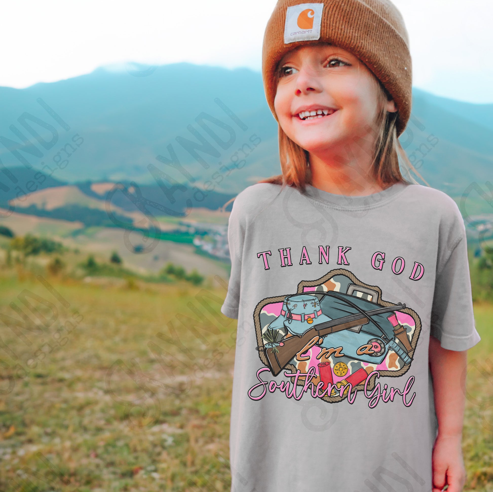 Thank God I'm a Southern Girl Sublimation Design PNG Digital Download Hunting Fishing Outdoors Pink Camo