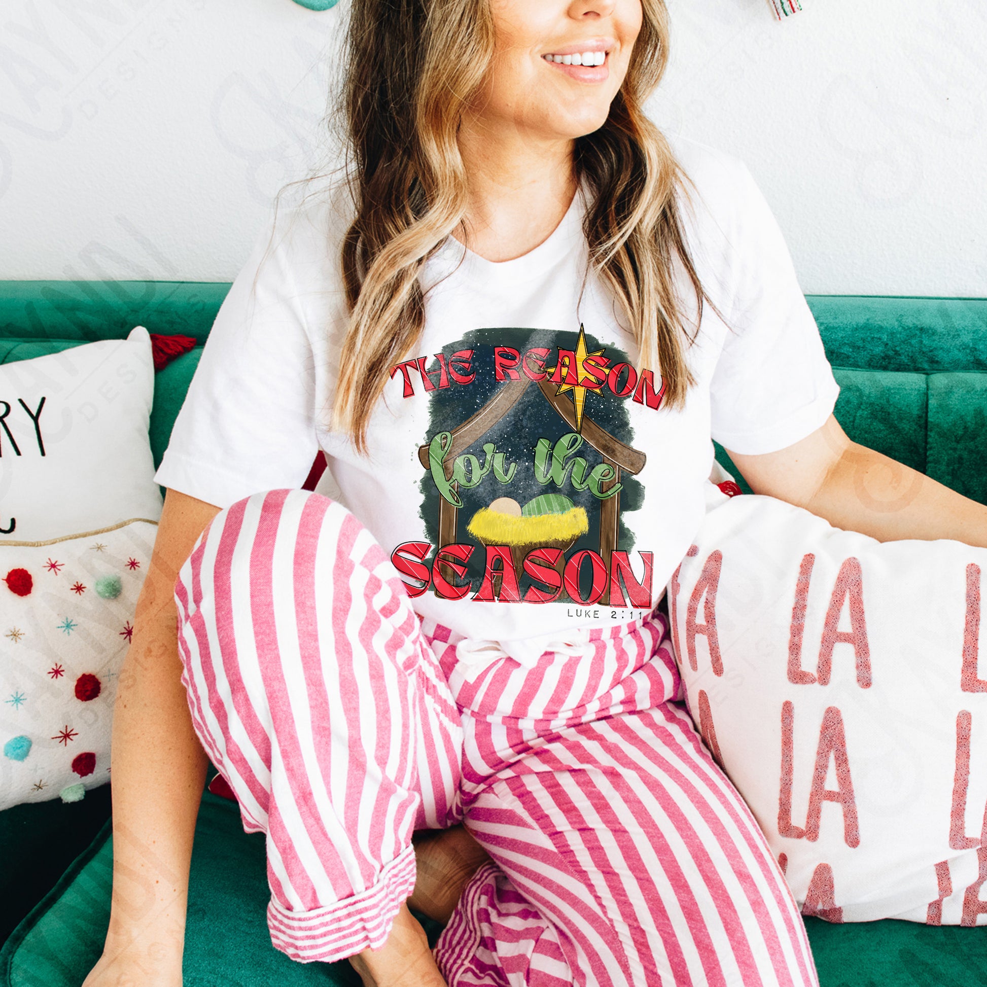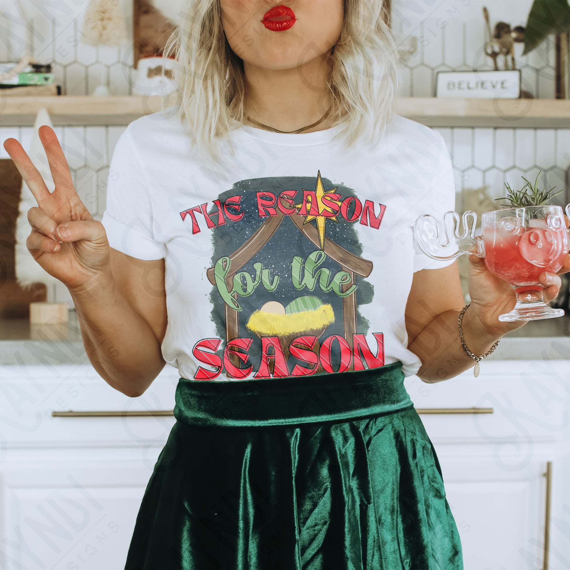 The Reason for the Season Red Sublimation Design PNG Digital Download Printable Christmas Manger Jesus