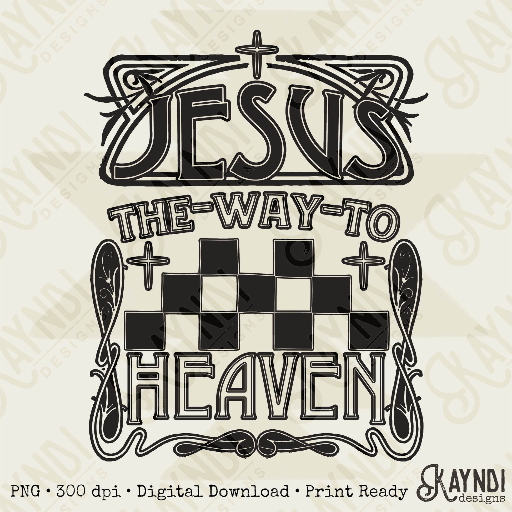 The Way To Heaven Single Color Sublimation Design PNG Digital Download Printable Faith Checkered Jesus