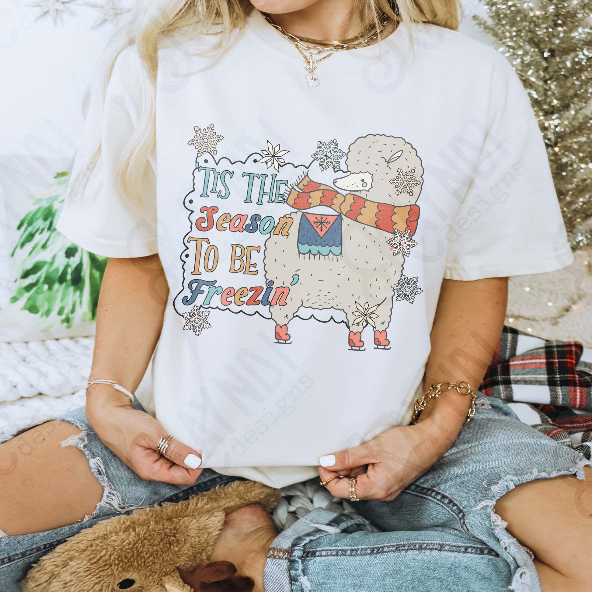 Tis the Season to be Freezin Sublimation Design PNG Digital Download Winter Funny Snow Alpaca