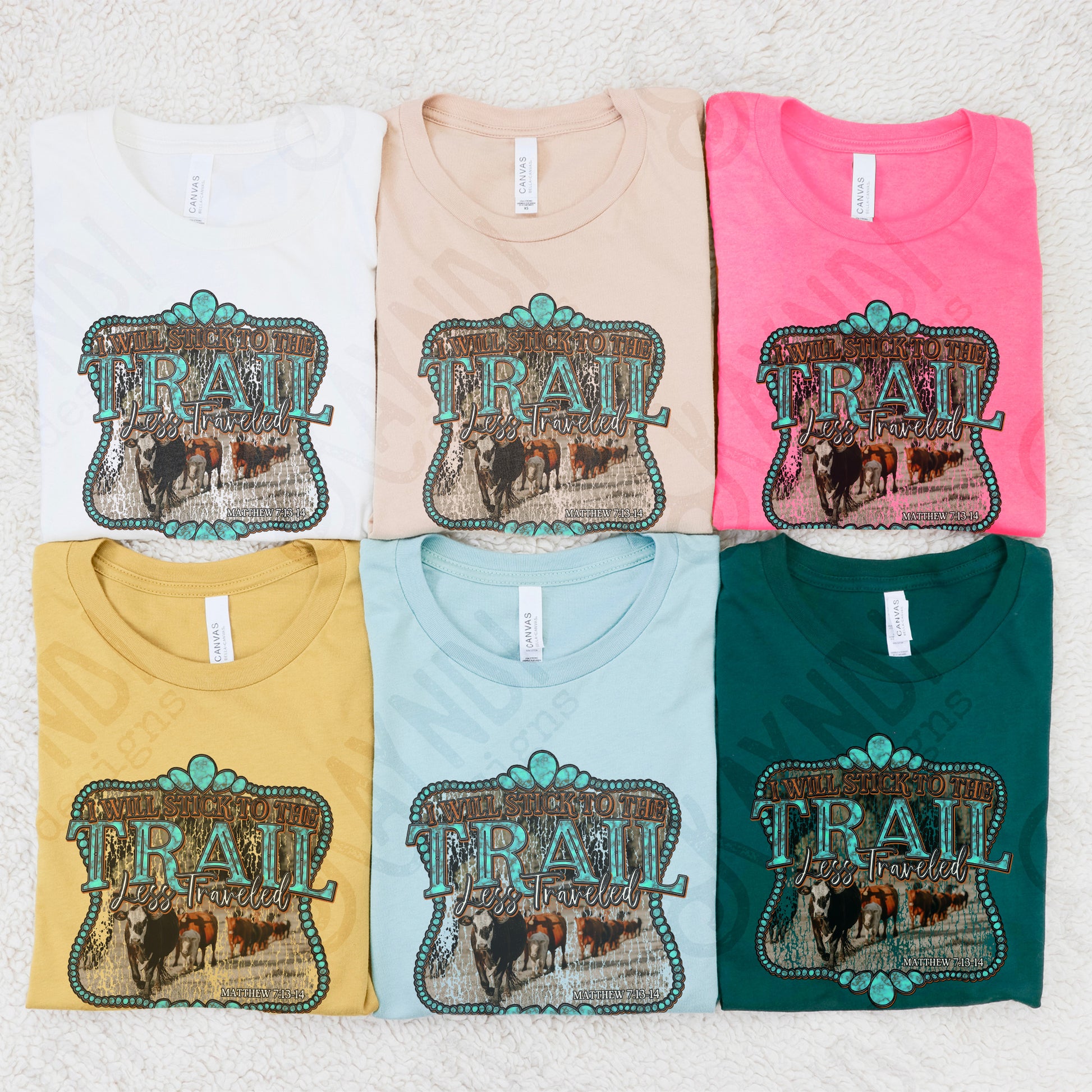 Trail Less Traveled Sublimation Design PNG Digital Download Printable Cattle Western Turequoise