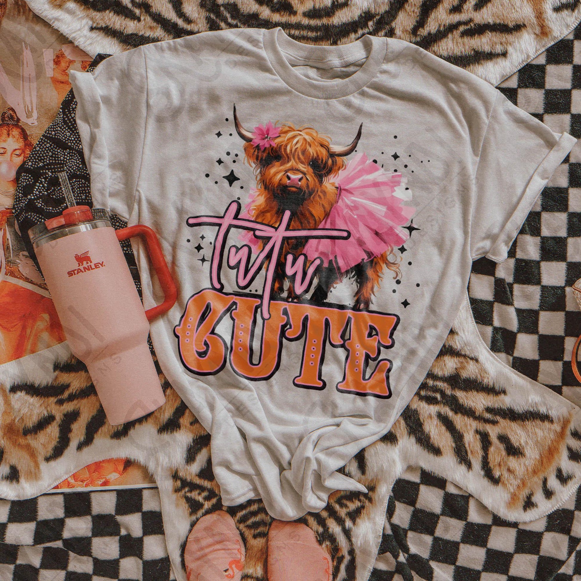 Tutu Cute Sublimation Design PNG Digital Download File Western Highland Cow Heifer Southern Living Printable