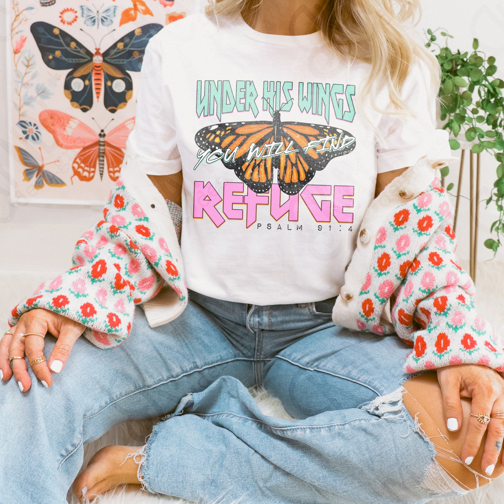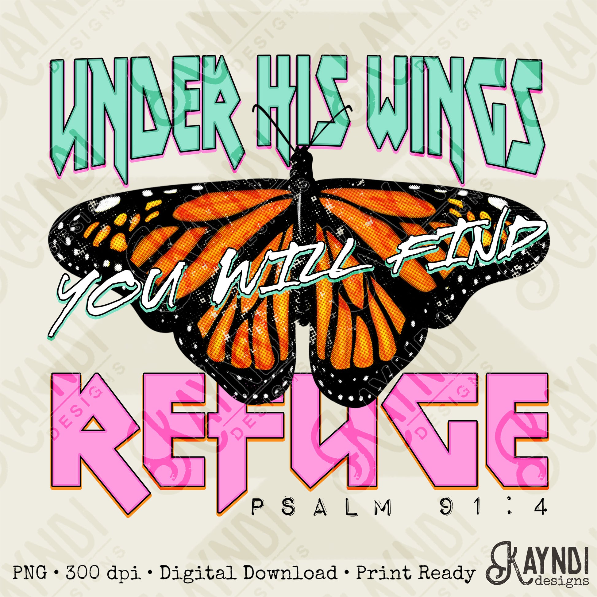 Under His Wings Dark Sublimation Design PNG Digital Download Printable Verse Butterfly Faith