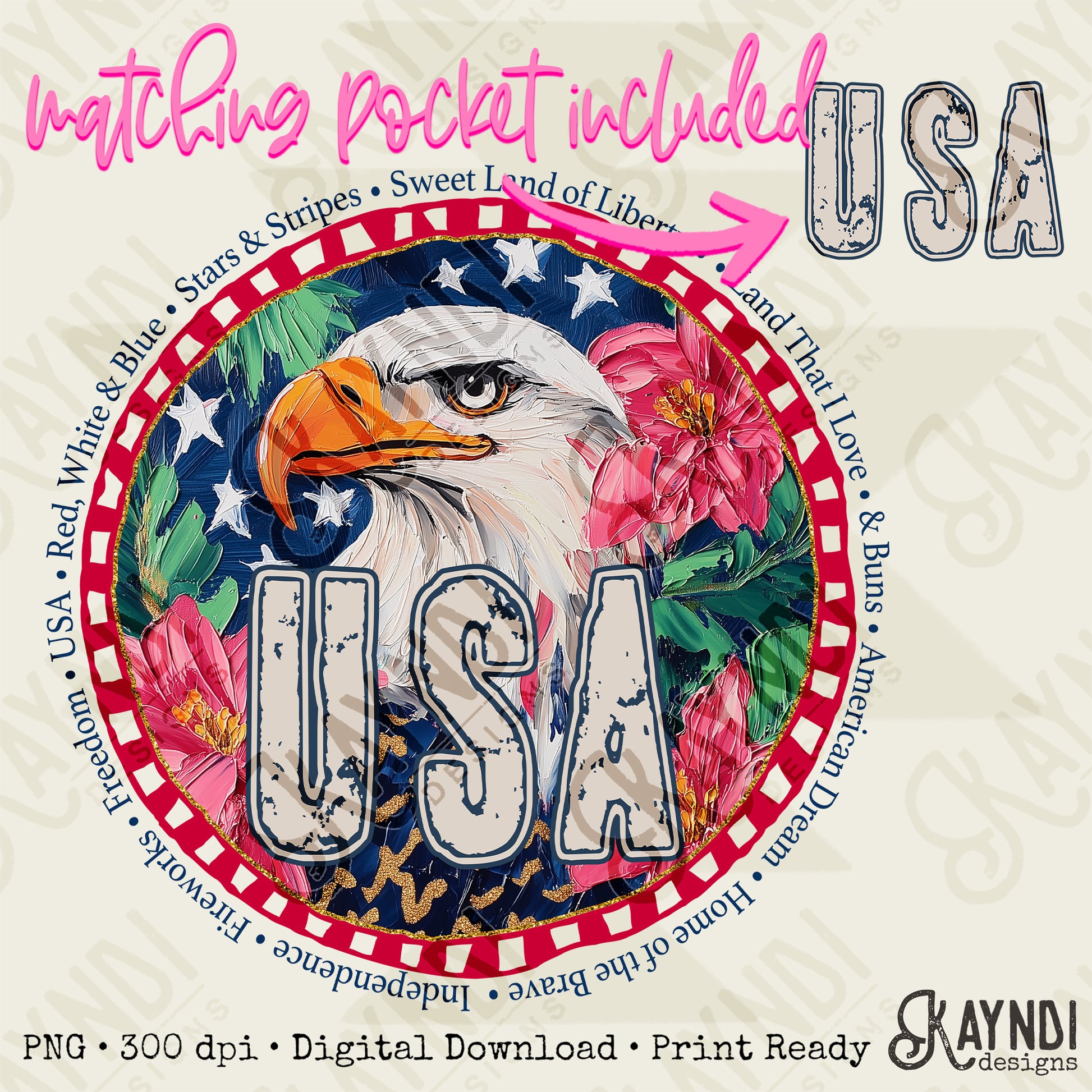 USA Eagle Matching Pocket Sublimation Design PNG Digital Download Printable Pocket Patriotic Flowers