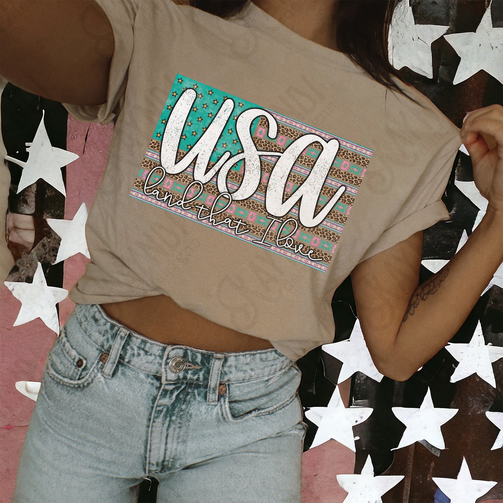 USA Land That I Love Sublimation Design PNG Digital Download Printable Grunge American Flag Leopard Cheetah Aztec Merica America