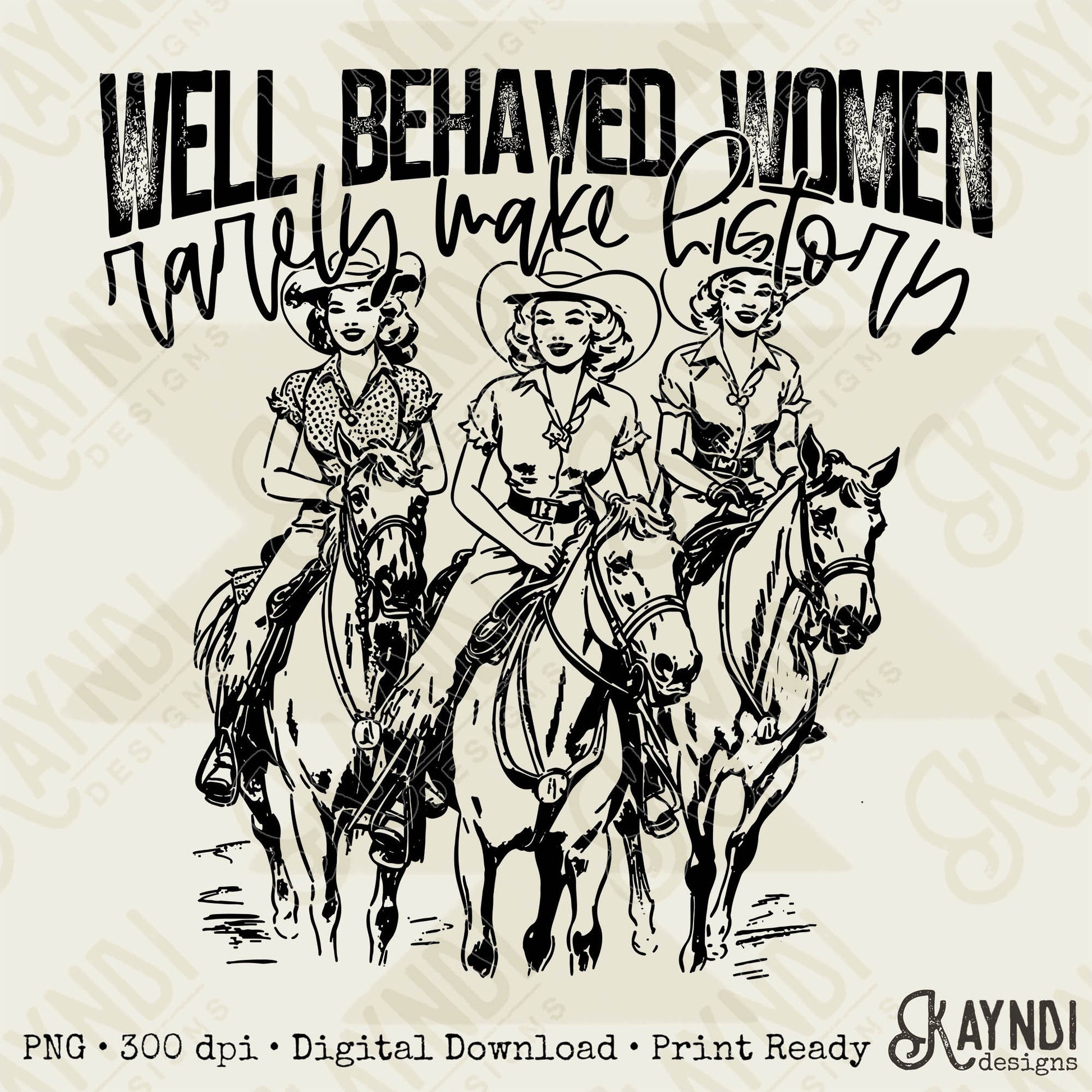 Well Behaved Women Rarely Make History Sublimation PNG, Digital Download, Printable Western, Single Color Design, DIY Craft Design