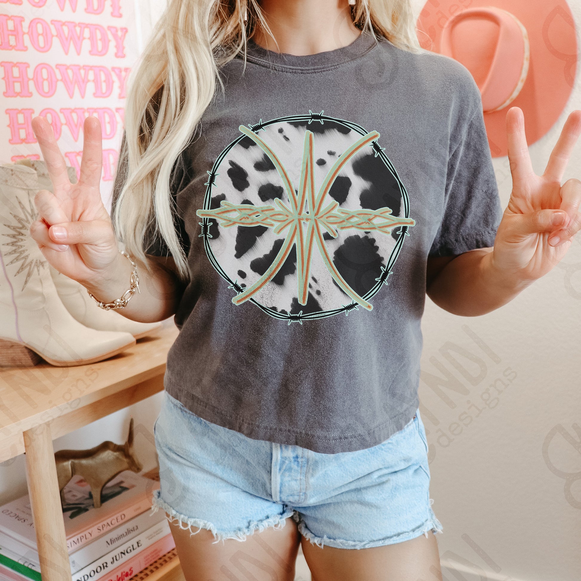 Western Design 2 Sublimation Design PNG Digital Download Printable Cow Print Black