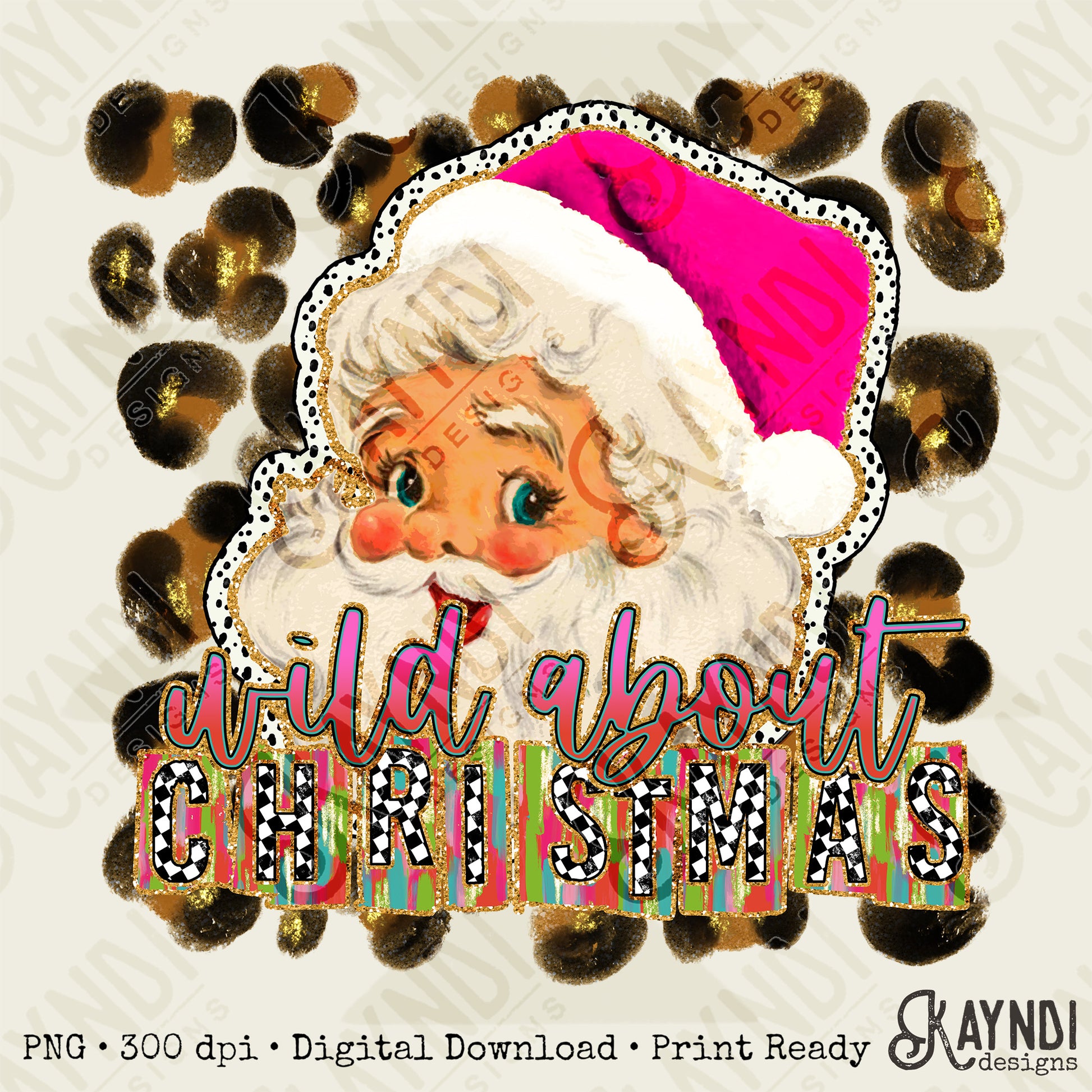 Wild About Christmas Sublimation Design PNG Digital Download Printable Christmas Pink Colorful Cheetah