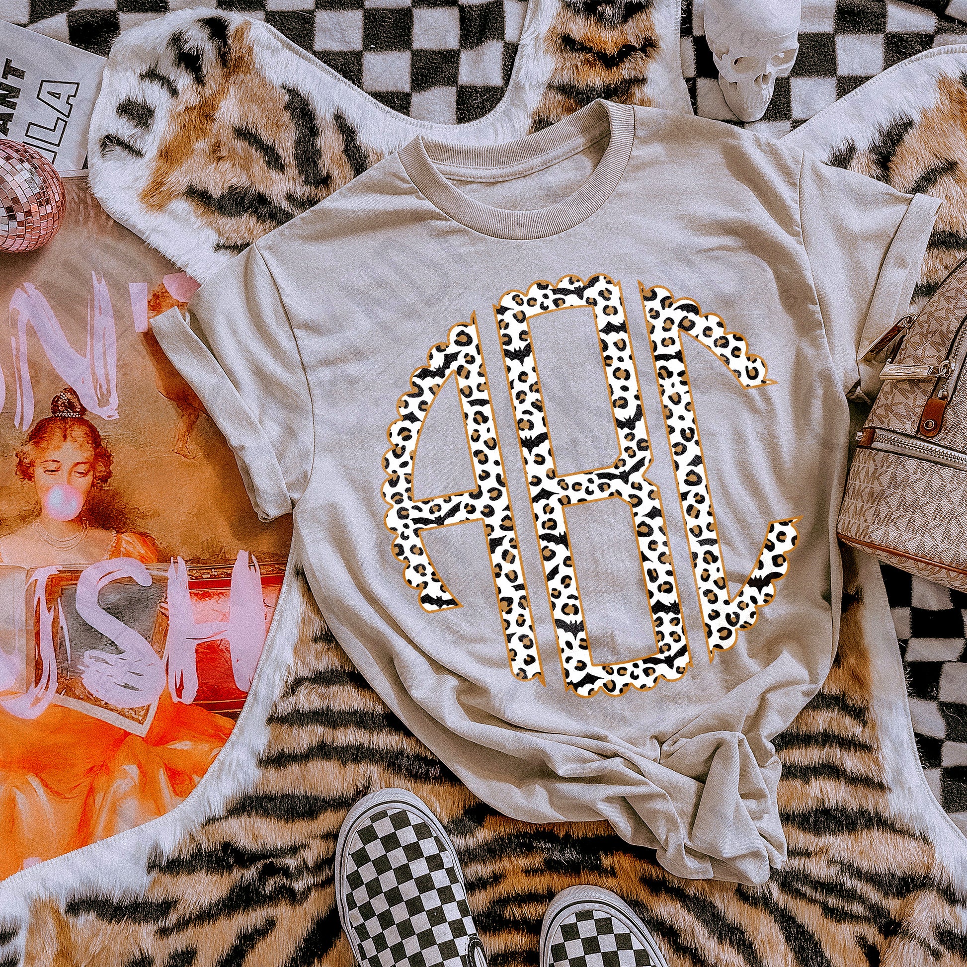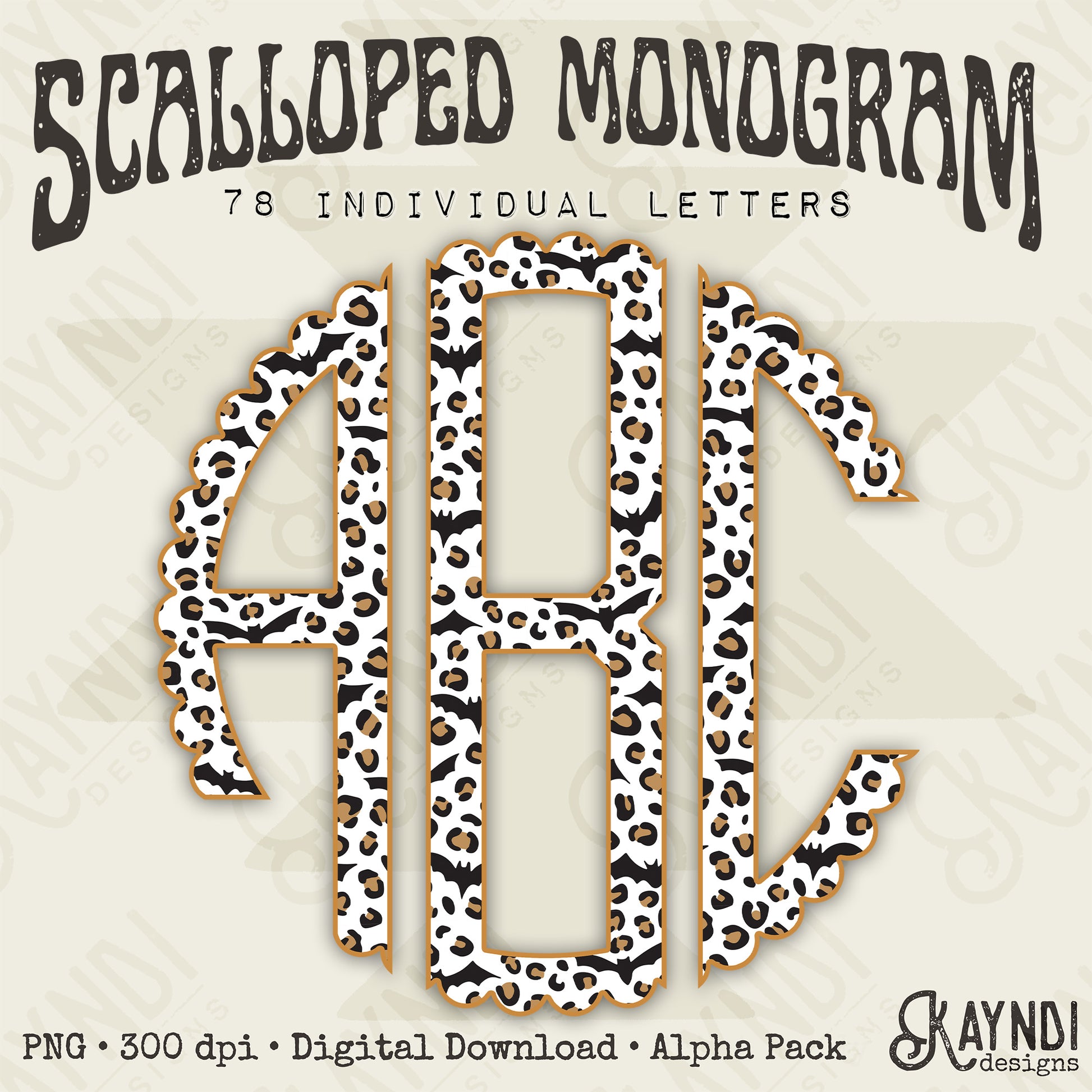 Wild and Batty Scalloped Monogram Set Sublimation Design PNG Digital Download Printable Leopard Bats