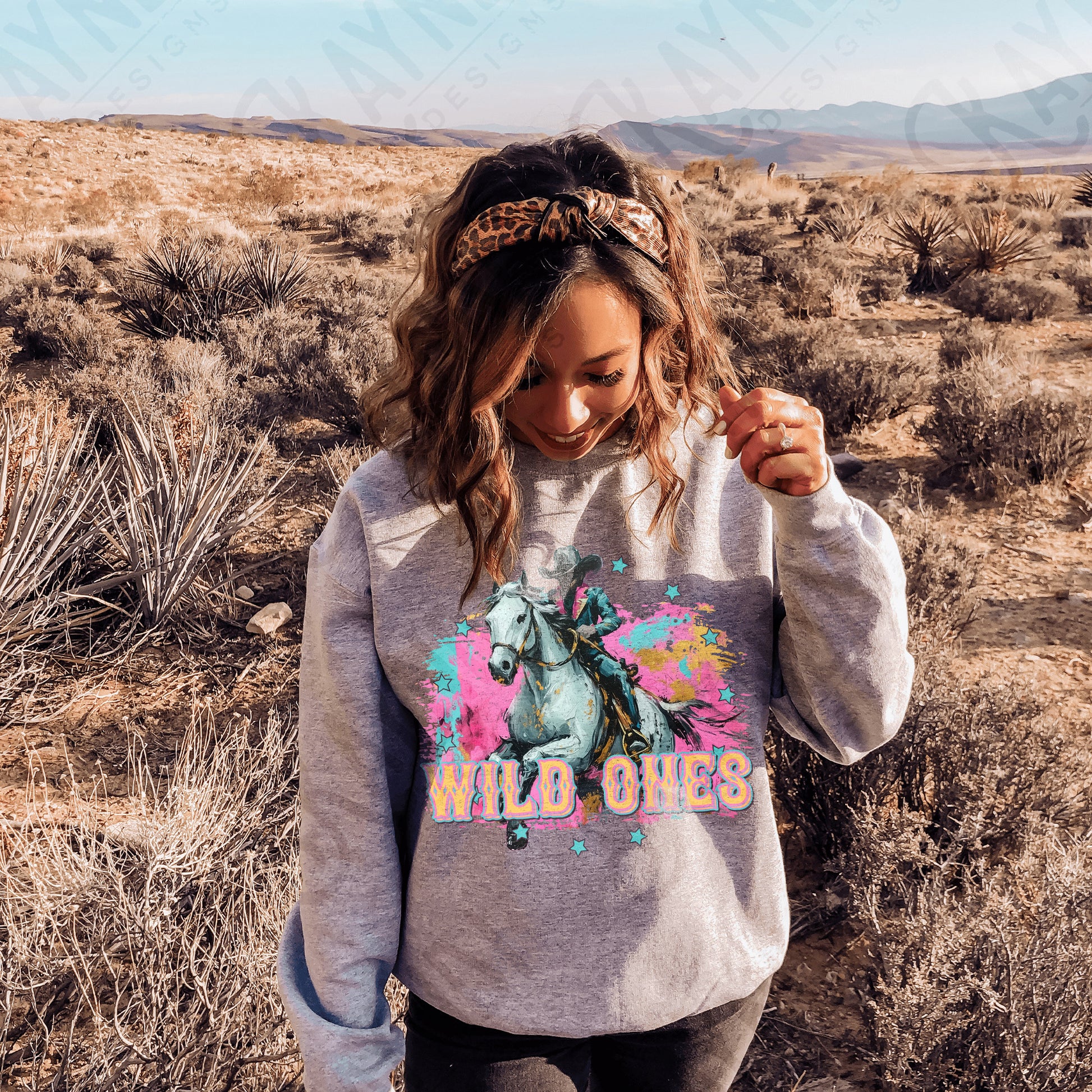 Wild Ones Sublimation Design PNG Digital Download Printable Rodeo Horse Riding Watercolor