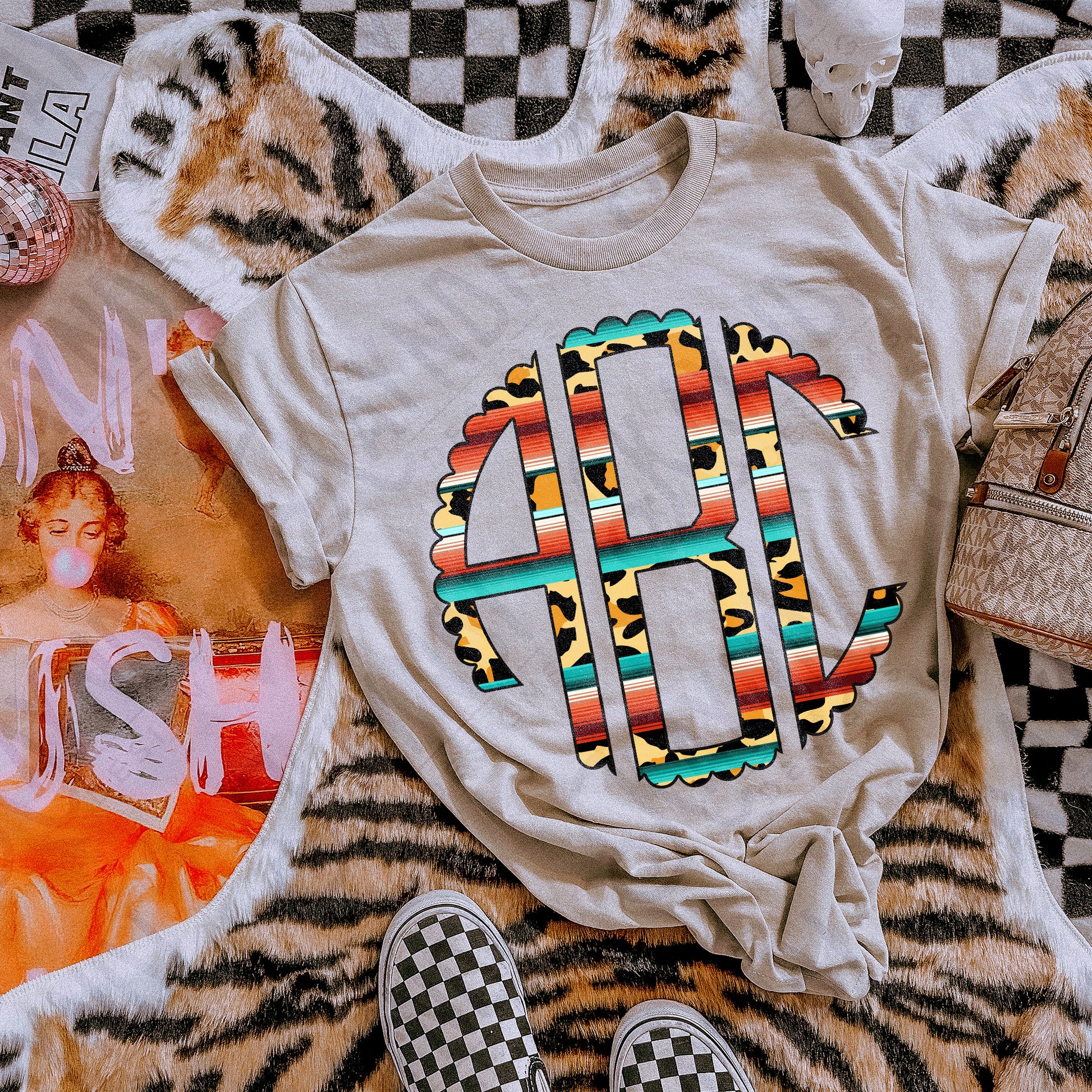 Wild Serape Scalloped Monogram Set Sublimation Design PNG Digital Download Printable